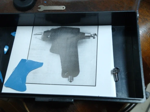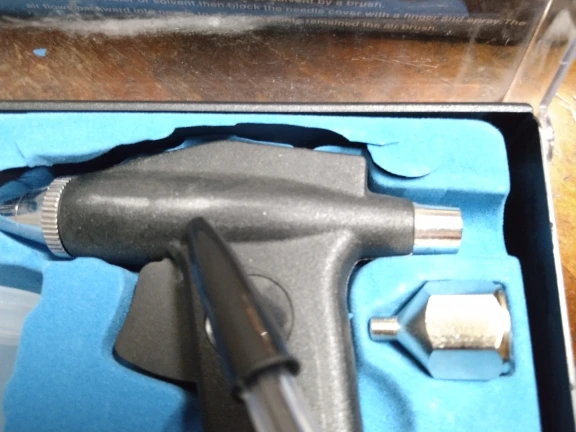 5. Для распыления тонкой линии снимите крышку иглы и Подержите воздушную щетку возле рабочей поверхности.
