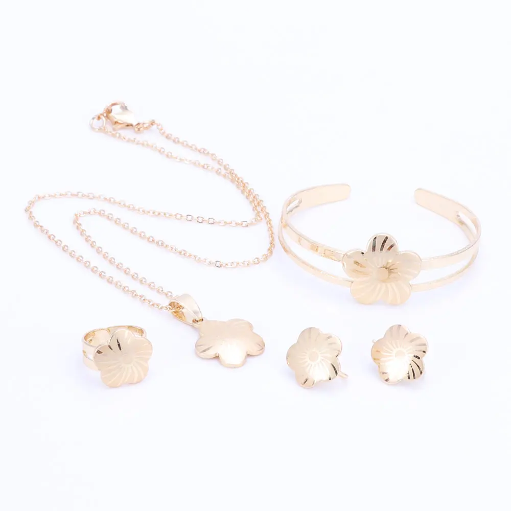 Комплекты ювелирных изделий для маленьких девочек, подарки для детей, комплект украшений для детей золотого цвета, подвеска в виде цветка, ожерелье, серьги, кольцо на запястье