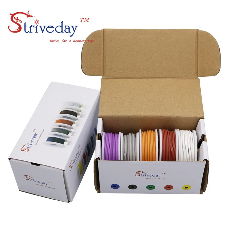24AWG 30 мкоробка 5 цветов в коробке смешанный провод высококачественный гибкий силиконовый провод и кабель медный провод из луженой меди DIY