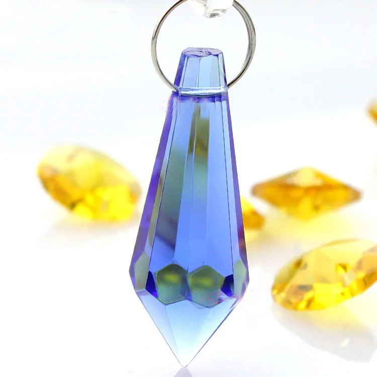 20 шт./лот 36 ммСветильник синийЛюстра стеклянные кристаллы лампы Призмы части сосулька Висячие Подвески + Бесплатные Кольца