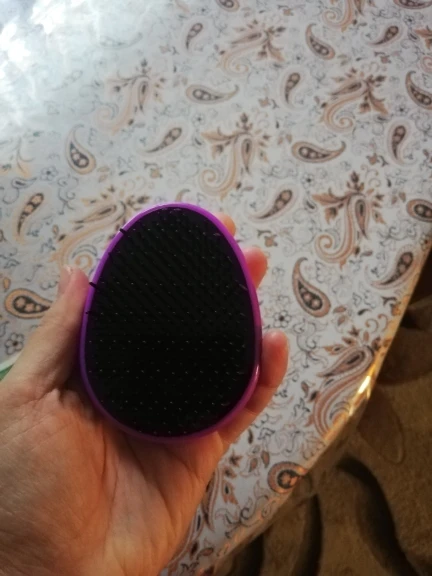 Расчёска пришла в срок. По размеру-- помещается в ладонь. Зубчики жёсткие, пластмассовые, не царапают. Думала они силиконовые, мягкие, но нет, дубовые. Не понравились.