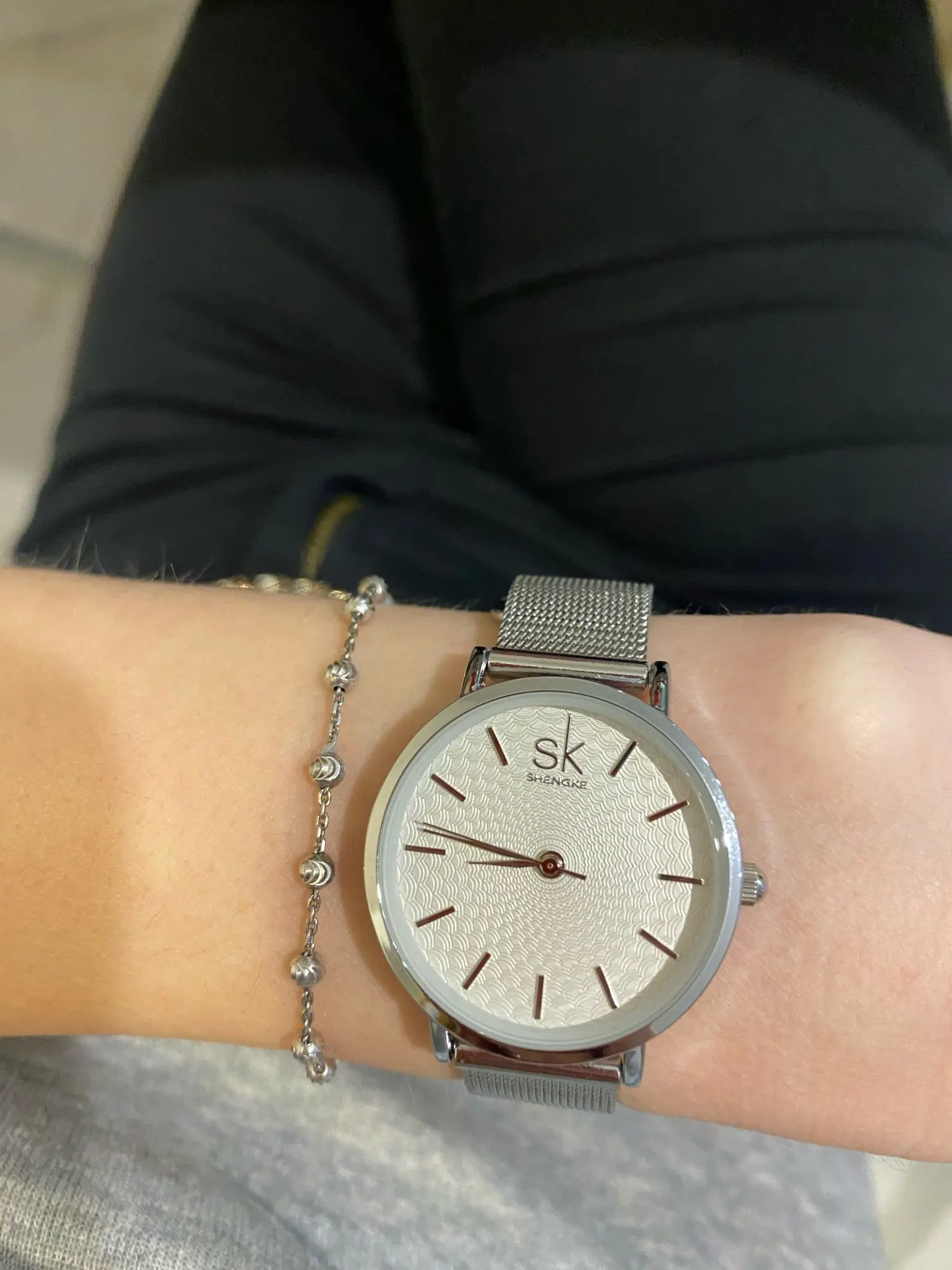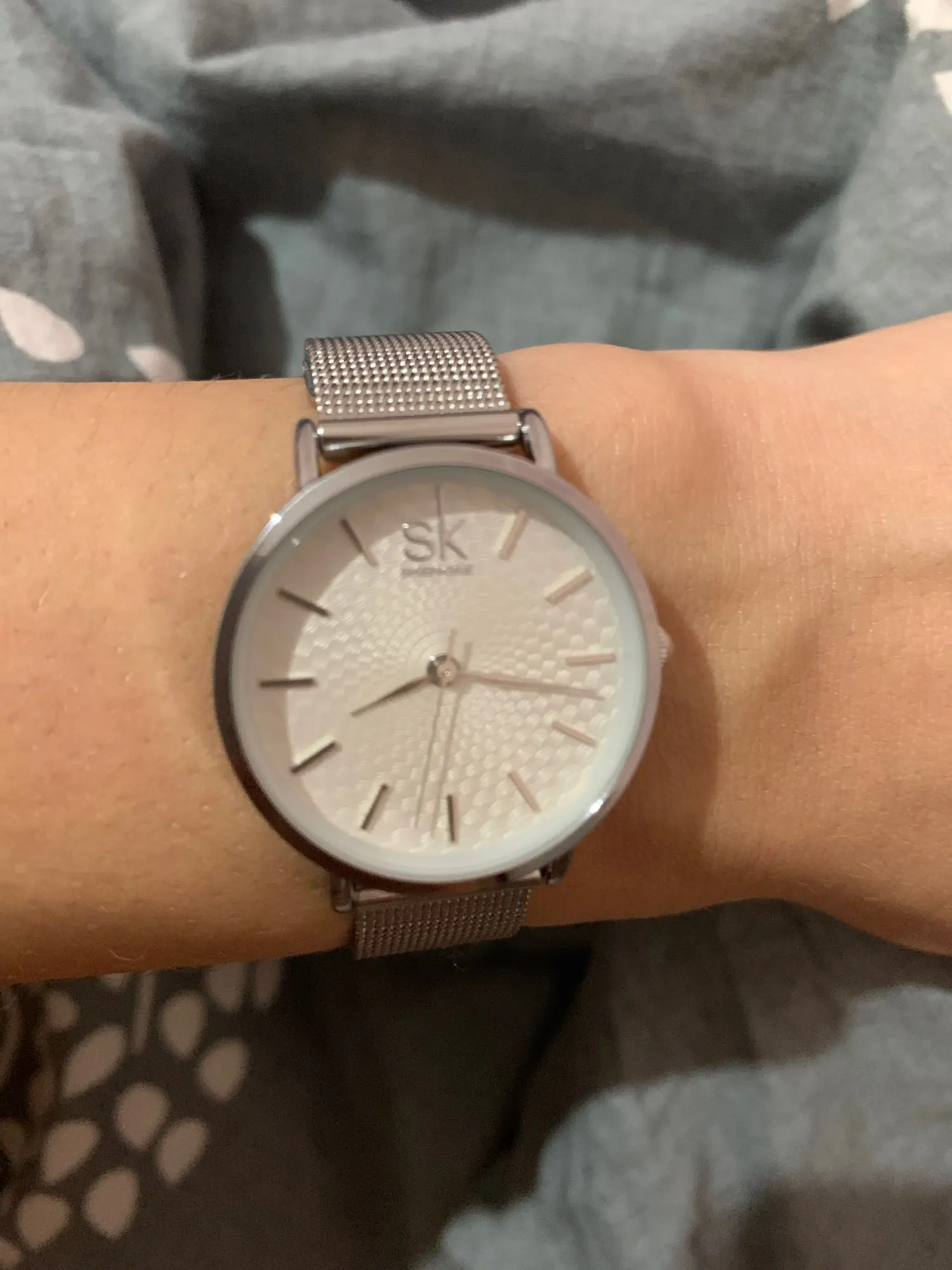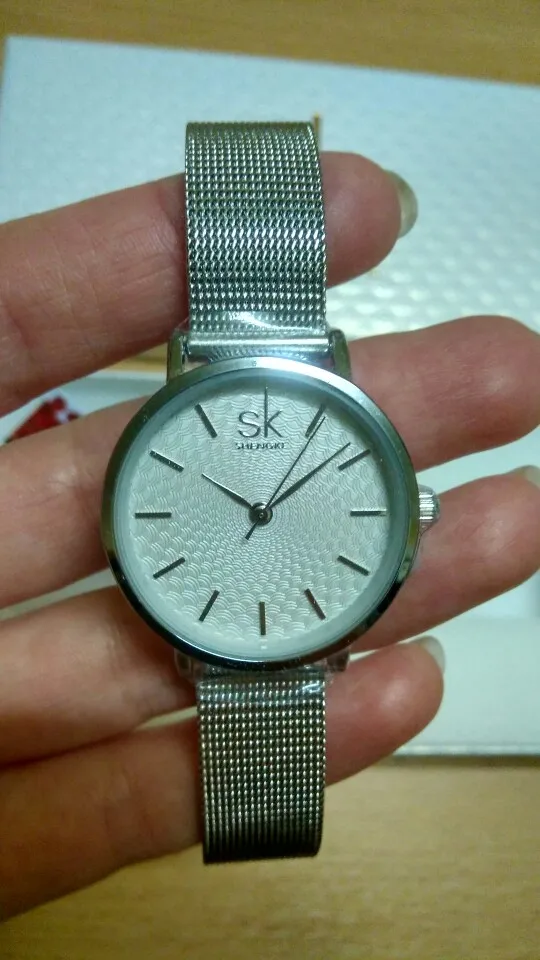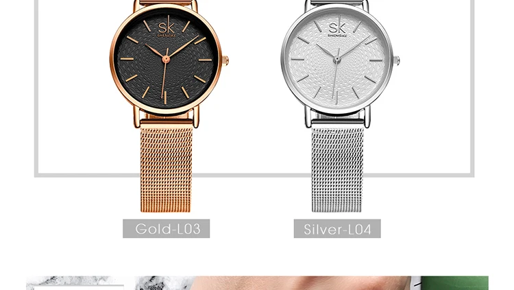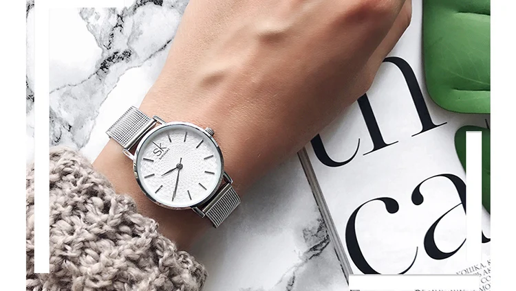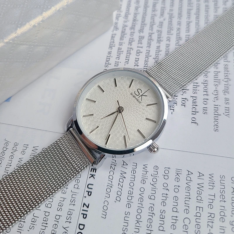 Женские наручные часы SK, супертонкие, из нержавеющей стали, с сеткой