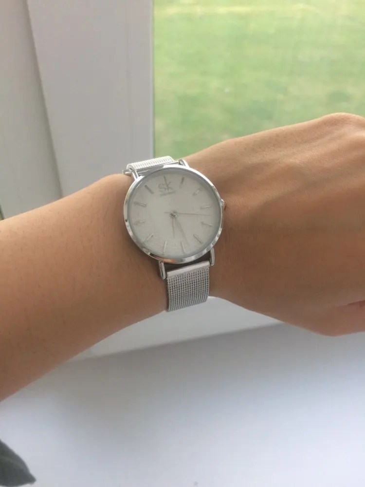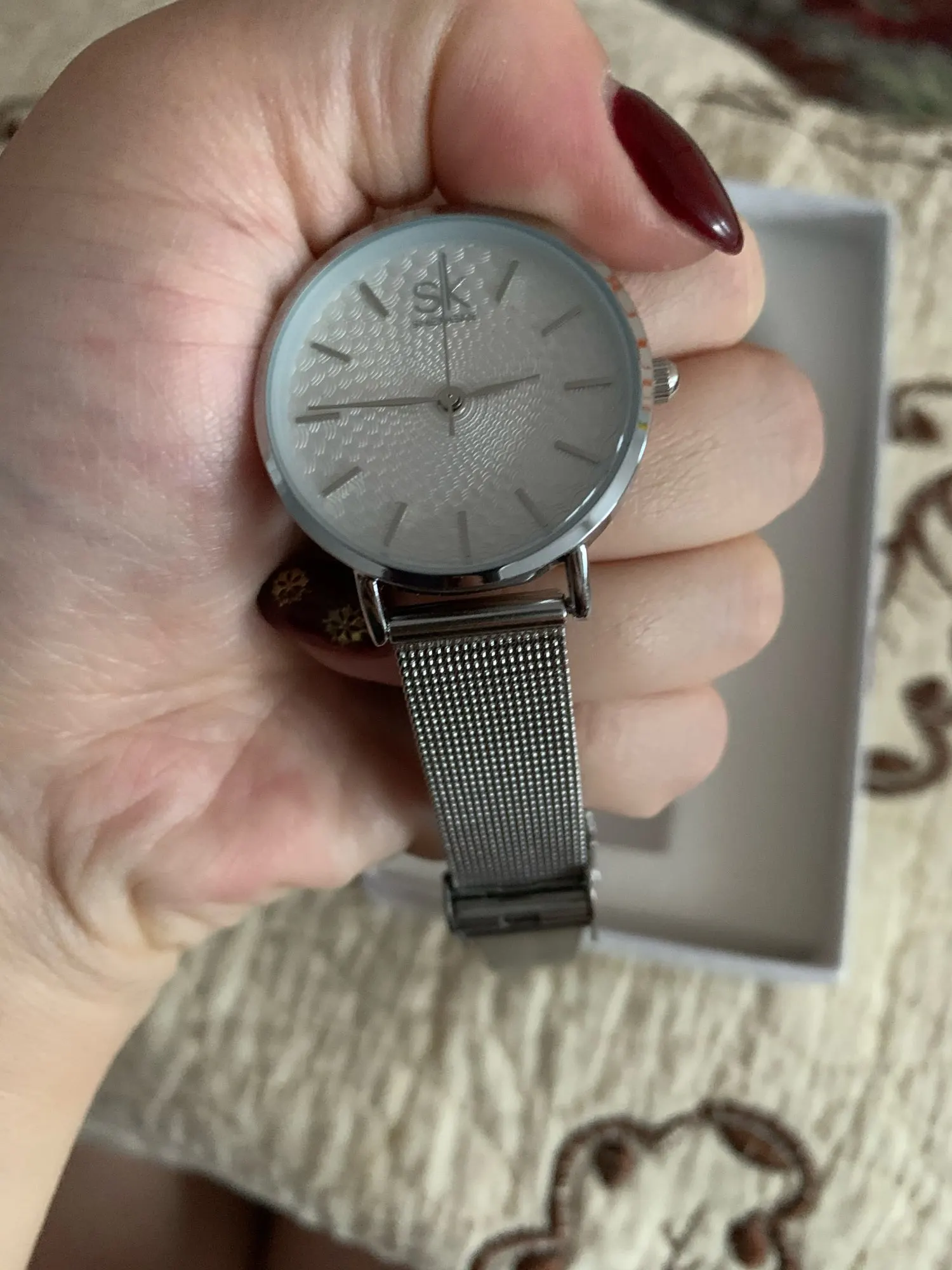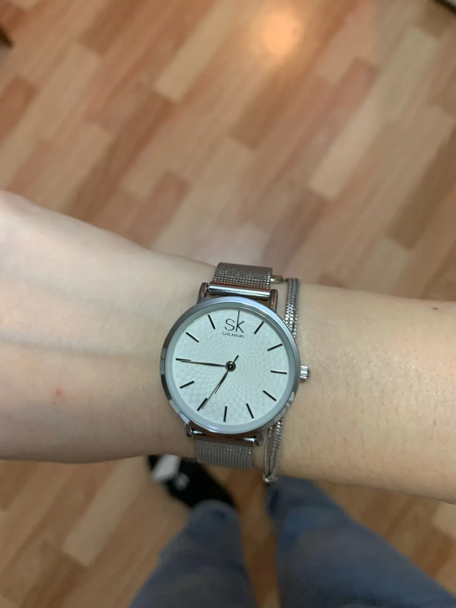 Это очень классные часы! Все качественно сделано, пришли целые, без царапин, а главное как быстро советую всем, продавец хороший, но не общалась с ним) качественный товар за приятную цену на руке смотрится изящно и нежно☺️