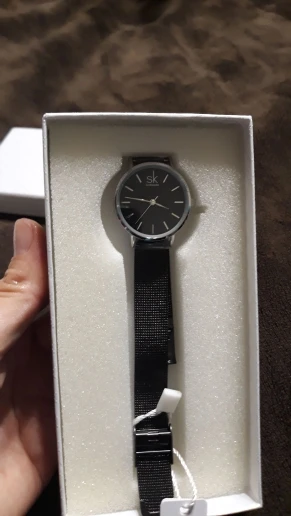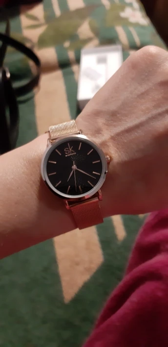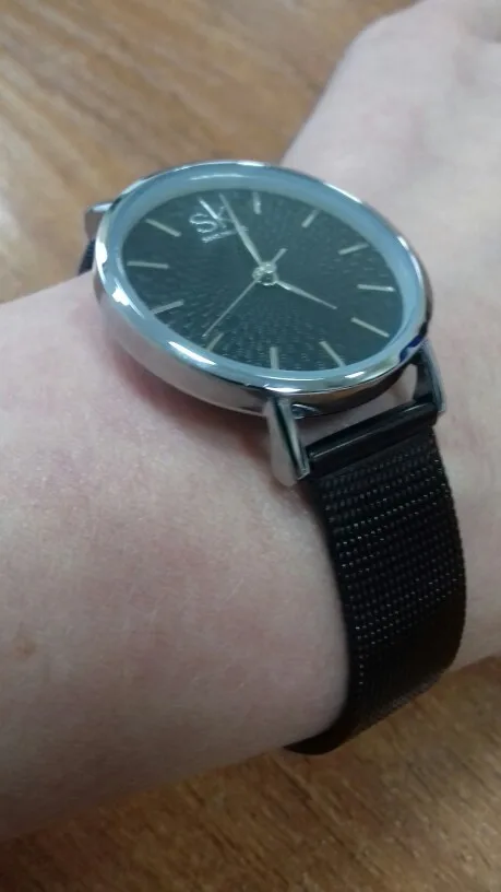 Заказываю уже в третий раз. Часы нереализованные, очень красивые, хорошо смотрятся на тонком запястье. Самое то для худеньких и миниатюрных девочек/женщин. Не смотрятся дёшево. Сама ношу чёрные, а золотые заказывала маме , она в восторге как и я) Ремешок хорошо регулируется, по началу немного грубоват но со временем смягчится. Свои ношу уже год, не отстают, правда в тишине слышно как тикают. Доставка очень быстрая, в коробочке упакованы хорошо. В общем не пожалеете! Отличная покупка. Думаю ещё заказать в серебристом цвете