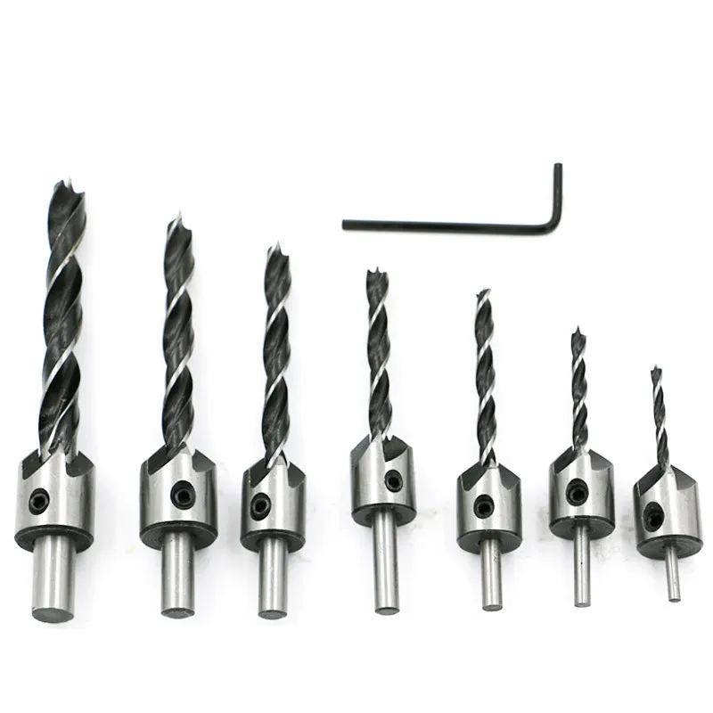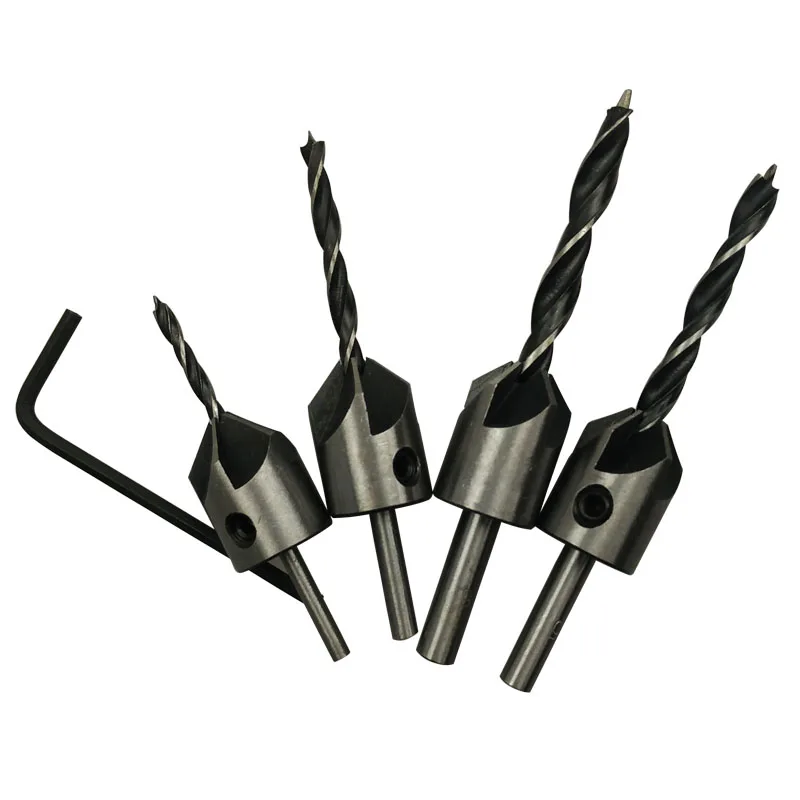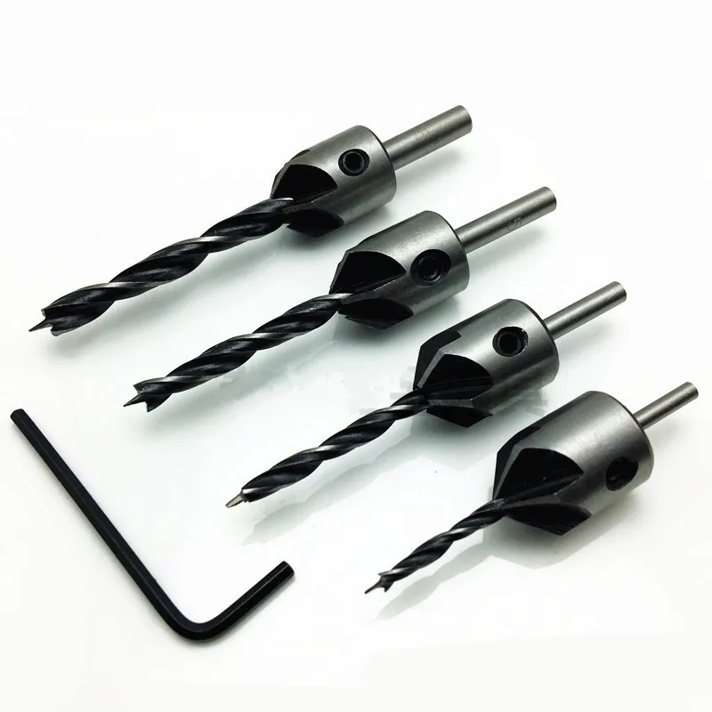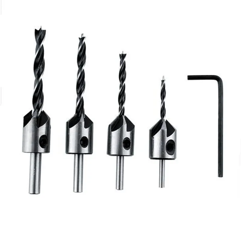 4 шт.компл.! Зенкер для фаски с 5 канавками, набор сверл с шестигранным ключом, зенкер для фаски, деревообрабатывающие электроинструменты 4 мм-6 мм