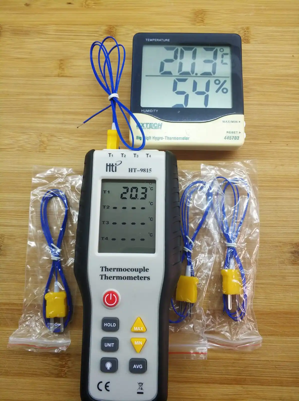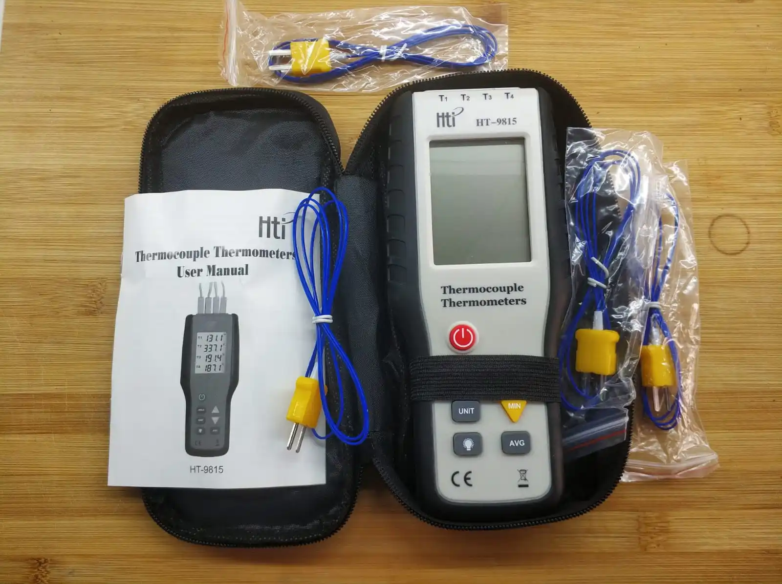 Неплохой прибор, погрешность соответствует заявленной +-1 градус. Нигде не написано, но прибор можно откалибровать, для этого надо зажать кнопку "Hold", кнопкой "Unit" можно выбирать термопару, кнопками "Min", "Max" уменьшать или увеличивать значение.