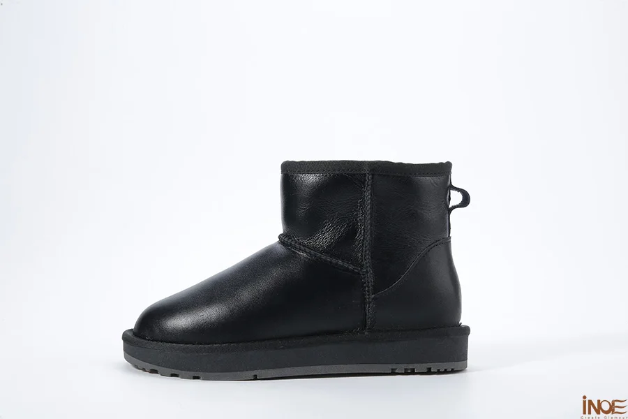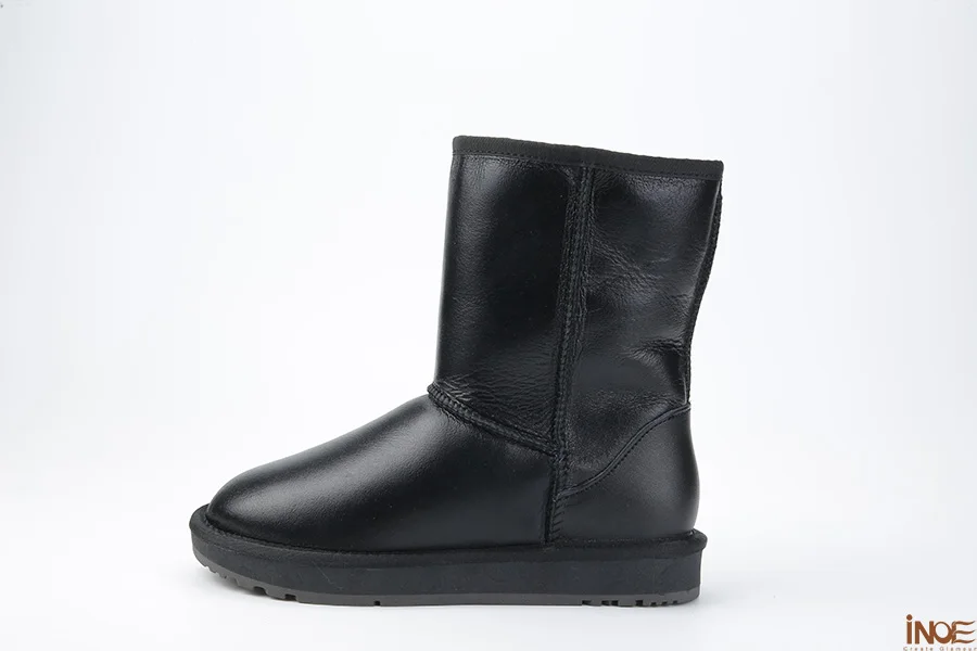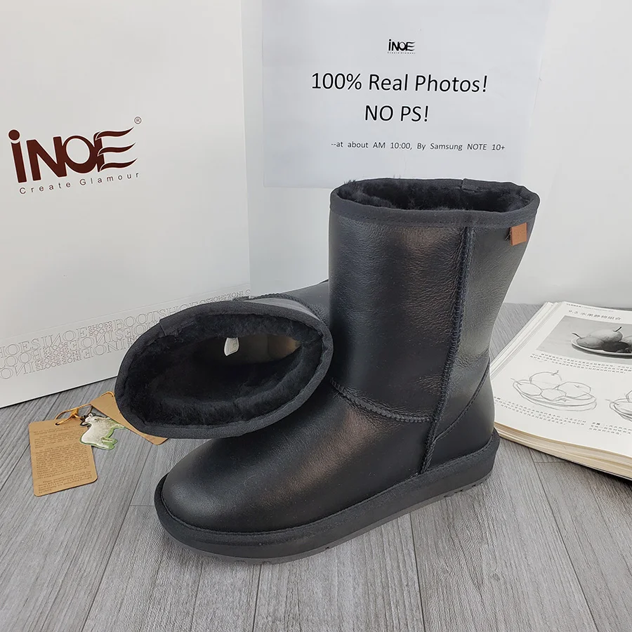 INOE классические мужские повседневные зимние сапоги из натуральной овечьей кожи, сохраняющая тепло обувь черного цвета из натуральной овечьей шерсти с меховой подкладкой