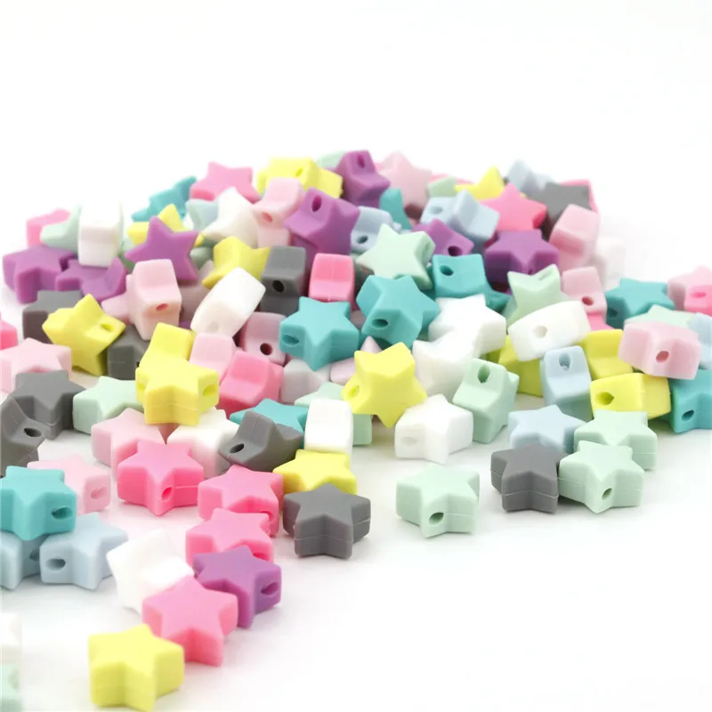 50 шт Звезда пищевого качества Силиконовые бусы для прорезывания зубов кулон 15 мм Детские Прорезыватели силиконовые бусины для самостоятельного прорезывания зубов Силиконовое ожерелье