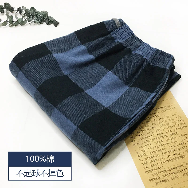Утолщенные зимние размера плюс 100% хлопковые мужские штаны для сна, теплые простые осенние пижамы, домашние брюки, Мужская пижама