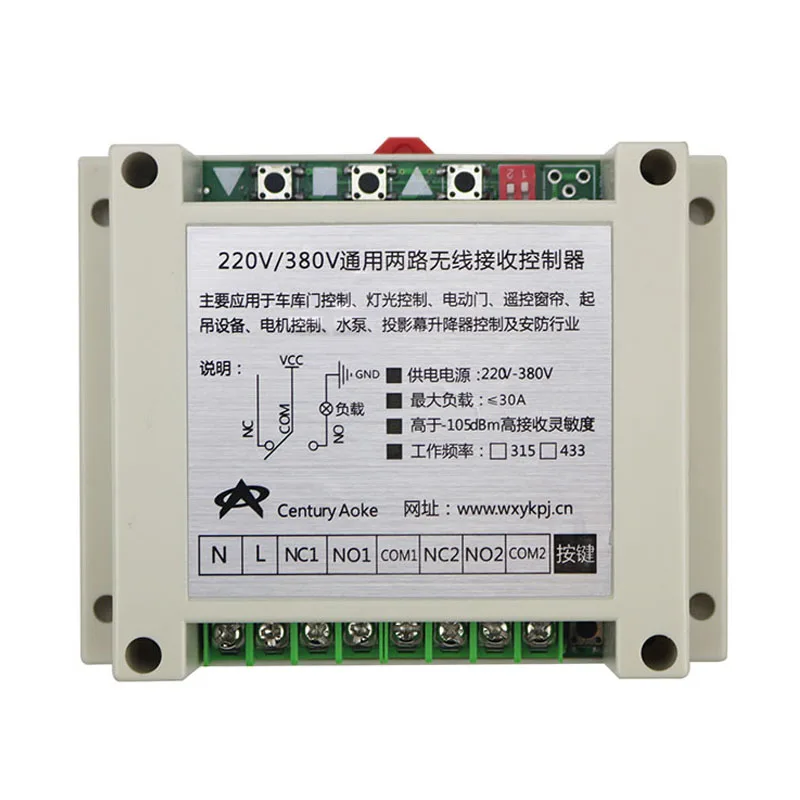 Этот вид двухстороннего пульта дистанционного управления с широким напряжением AC220-380V, переключатель питания, профессиональный чип управления импульсным источником питания, стабильность напряжения источника питания, понижающая емкость полного сопротивления и стабилизирующее напряжение источника питания, что приводит к нестабильности всего переключателя. Переключатель дистанционного управления использует реле 30 А, Может загружать электрические приборы высокой мощности, обучение декодированию микроконтроллера, может узнать больше пульта дистанционного управления, простое управление, поддерживающее гибкость; Тумблер используется для улучшения выходного способа работы переключателя, динамический, самоблокировка, блокировка (точка) может быть произвольным выбором, простота использования, Еще один новый способ ручной работы. Применяется для нескольких областей различных целей; Зарезервировано для сварочных насадок с выходными данными, может получать через короткие разные паяльные соединения, выбор местоположения кнопок дистанционного управления, удобная клиентская поддержка различных пультов дистанционного управления, которые вам нравятся, Чтобы избежать старых фиксированных одиночных клавиш, вы можете соответствовать смущению пульта дистанционного управления.В основном используется в управлении гаражными дверями, управлении освещением, электрических дверях, занавесках с дистанционным управлением, подъемном оборудовании, моторном управлении, водяном насосе, проекционном экране управления лифтом, а также в сфере безопасности и в других областях, легко устанавливается, воспользуйтесь преимуществами простого, безопасного и надежного.