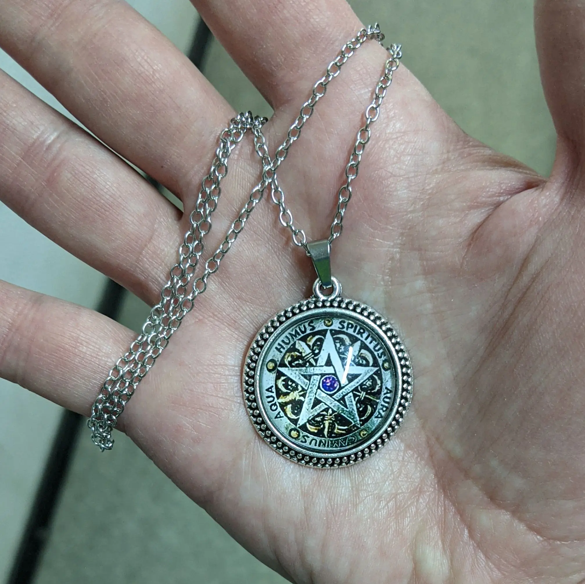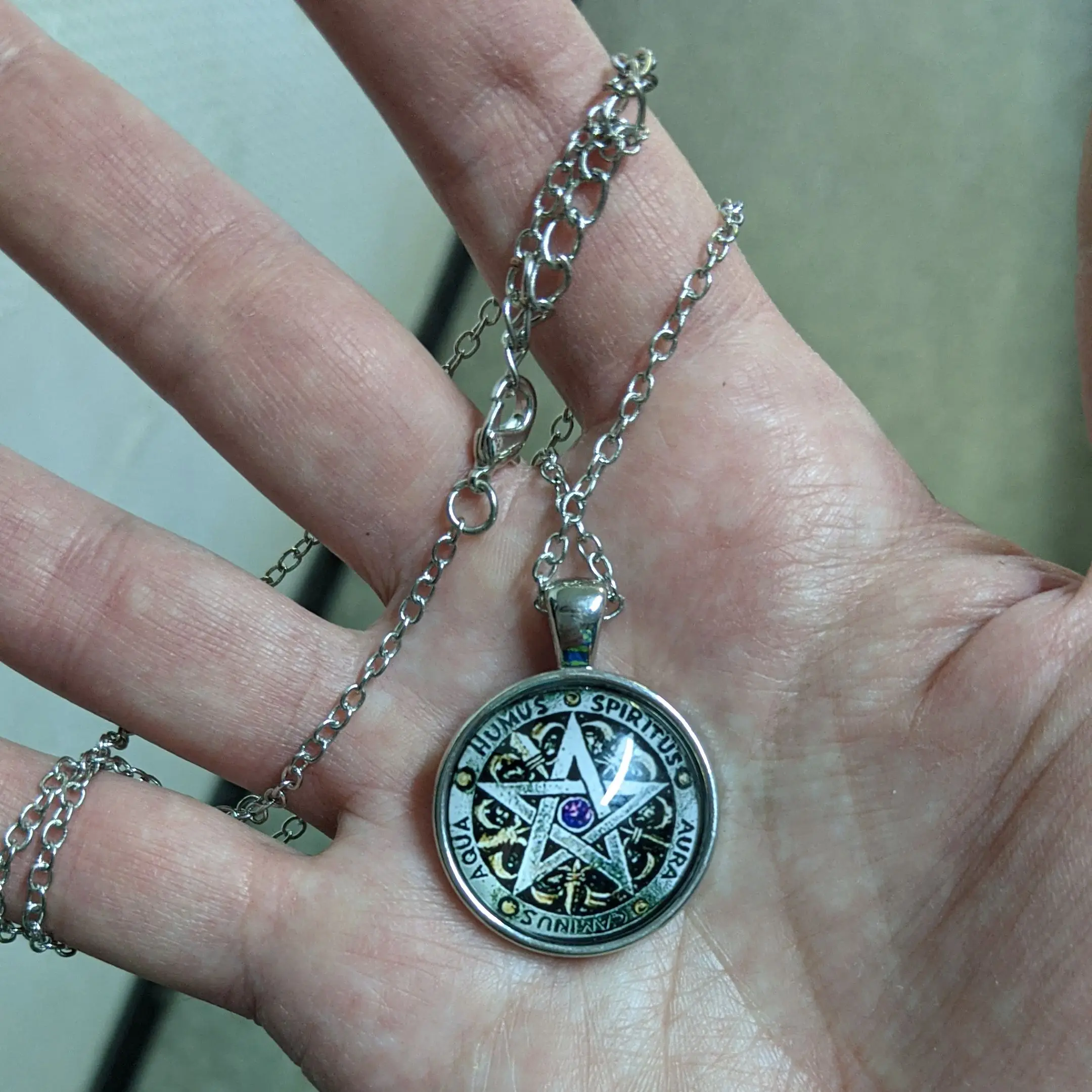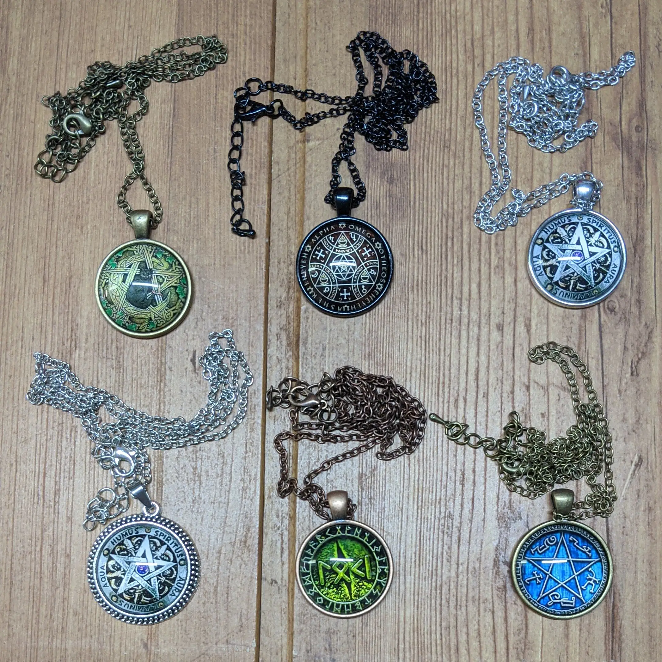 Ожерелье Wiccan, черный Магик, языческая пентаграмма, ювелирные изделия, стеклянный купол, ожерелье, оптовая продажа, 2017, A-010 HZ1