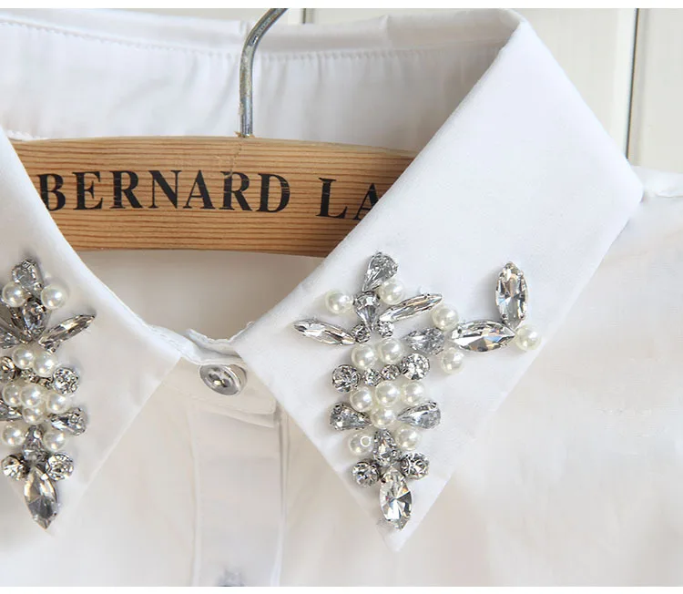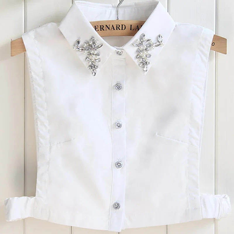 Аксессуары для вышивки жемчугом, жилет с фальшивым воротником, рубашка женская, винтажная, из шифона, с жемчугом