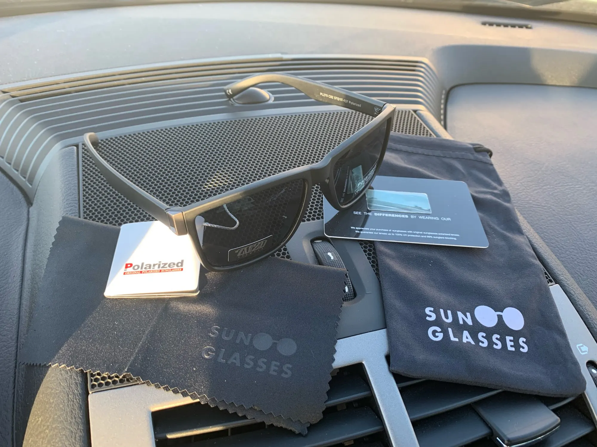 Замечательные очки. Нет, серьезно, очки отличные, и они поставляются с чехлом, ловушкой очистки линз и тест на поляризацию. Мне нравятся.