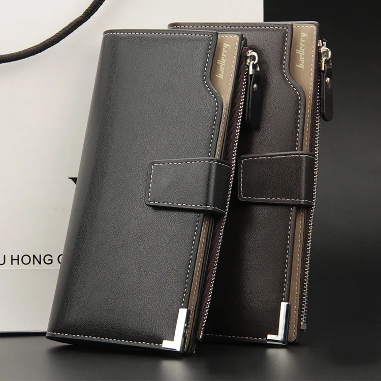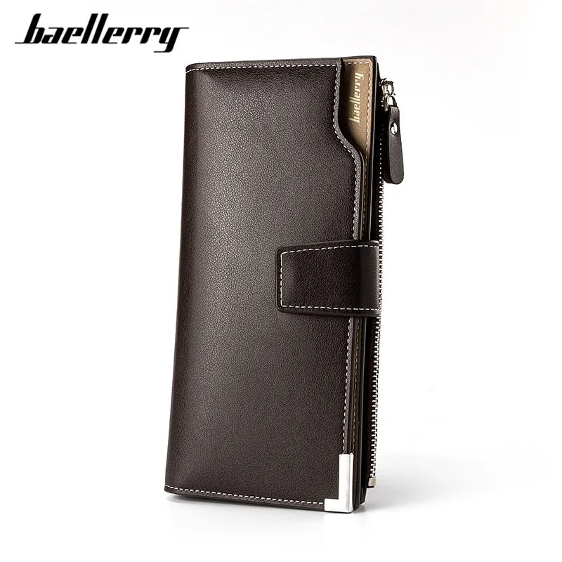 Мужской Длинный кошелек Baellerry, вместительный многофункциональный кожаный кошелек на молнии