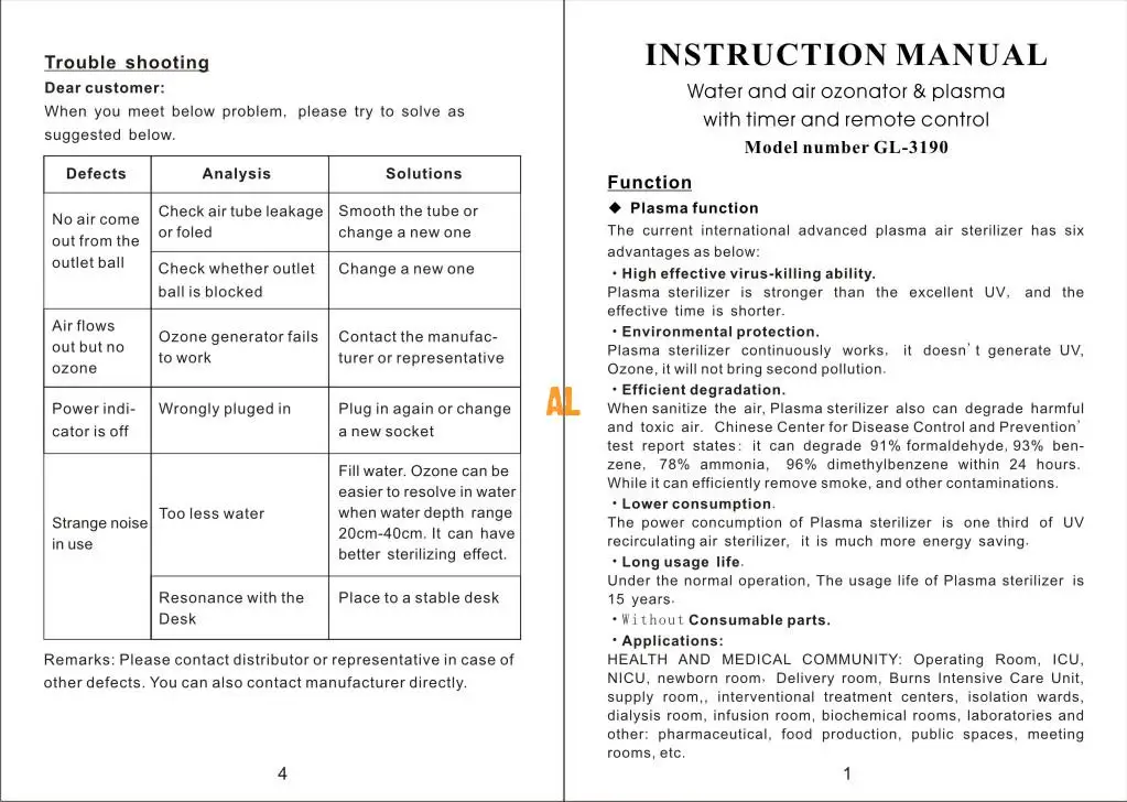 Плазменный очиститель для воздуха Gl-3190 для очистки воздуха домаофиса с большой мощностью с ионизатором анионом и озоном с Ce