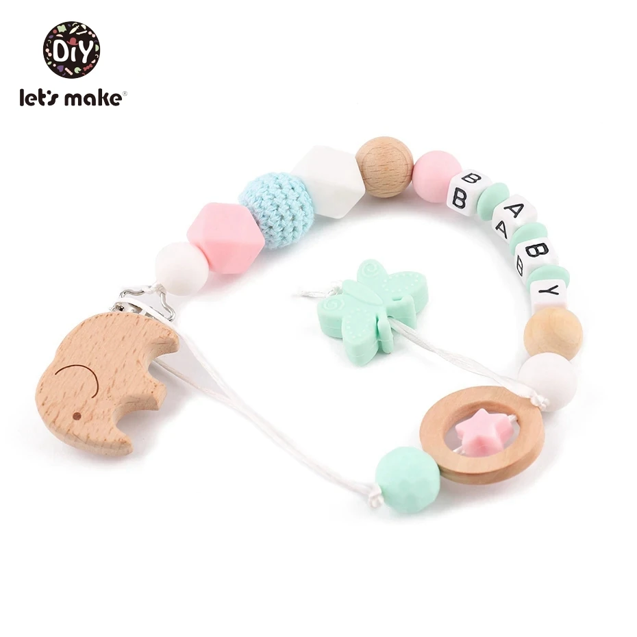 Зажим для соски Let's Make, круглые деревянные гравированные бусины...
