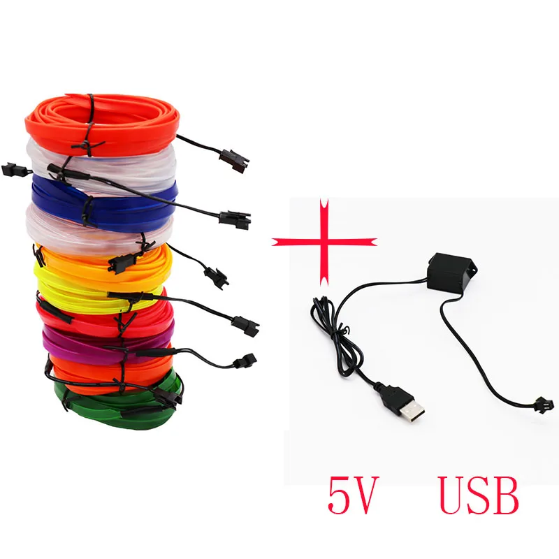 1 м 2 м 3 м 5 м 8 мм Швейные край неоновый светильник для танцев вечерние декоративная лампа для автомобиля светильник гибкий неон EL трос Трубка Светодиодные ленты с выходом 5V USB разъем