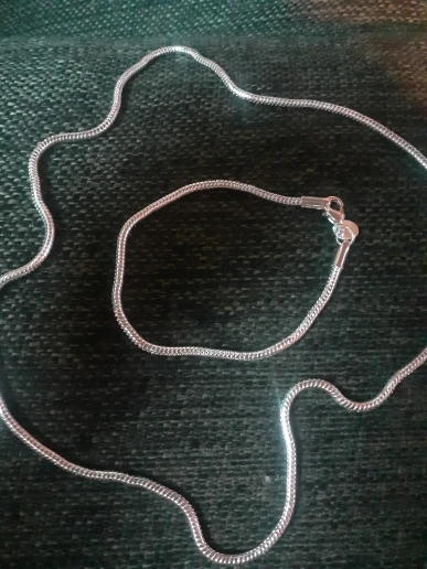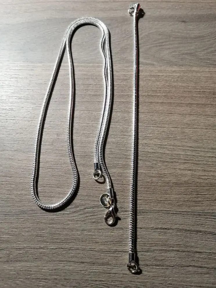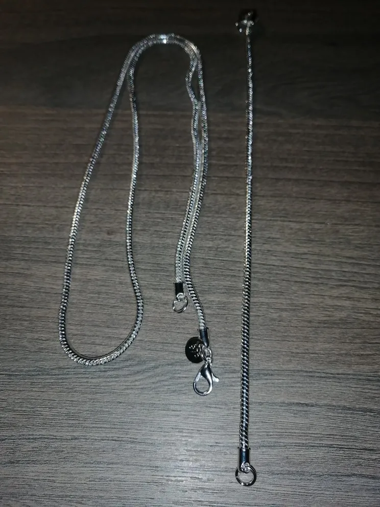 Комплект понравился, проба стоит! Под шармы не подходит, толстая! Надо внимательно выбирать кулон, застежка широковата! Красивый, смотрится дорого! Спасибо, продавцу!