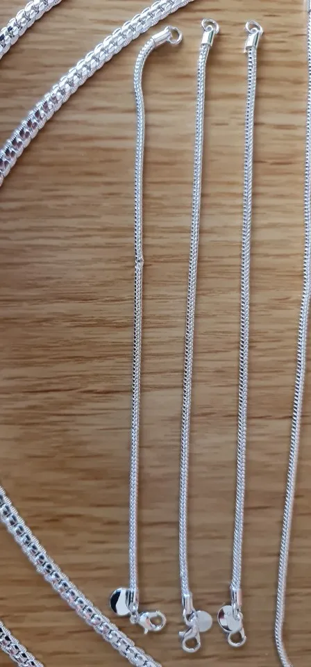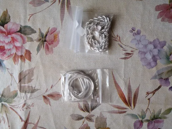 Доставка быстрая. Заказала 13.08., отправили 14.08., пришло 01.09. Упаковано хорошо. Полностью соответствует описанию. Цепочки не пустотелые, очень тяжёлые. Качество супер! Стоят пробы 925. Не знаю на сколько серебро, но выглядят очень достойно, не дёшево. Браслет великоват (ручка тоненькая). Покупкой довольна. Продавцу спасибо!