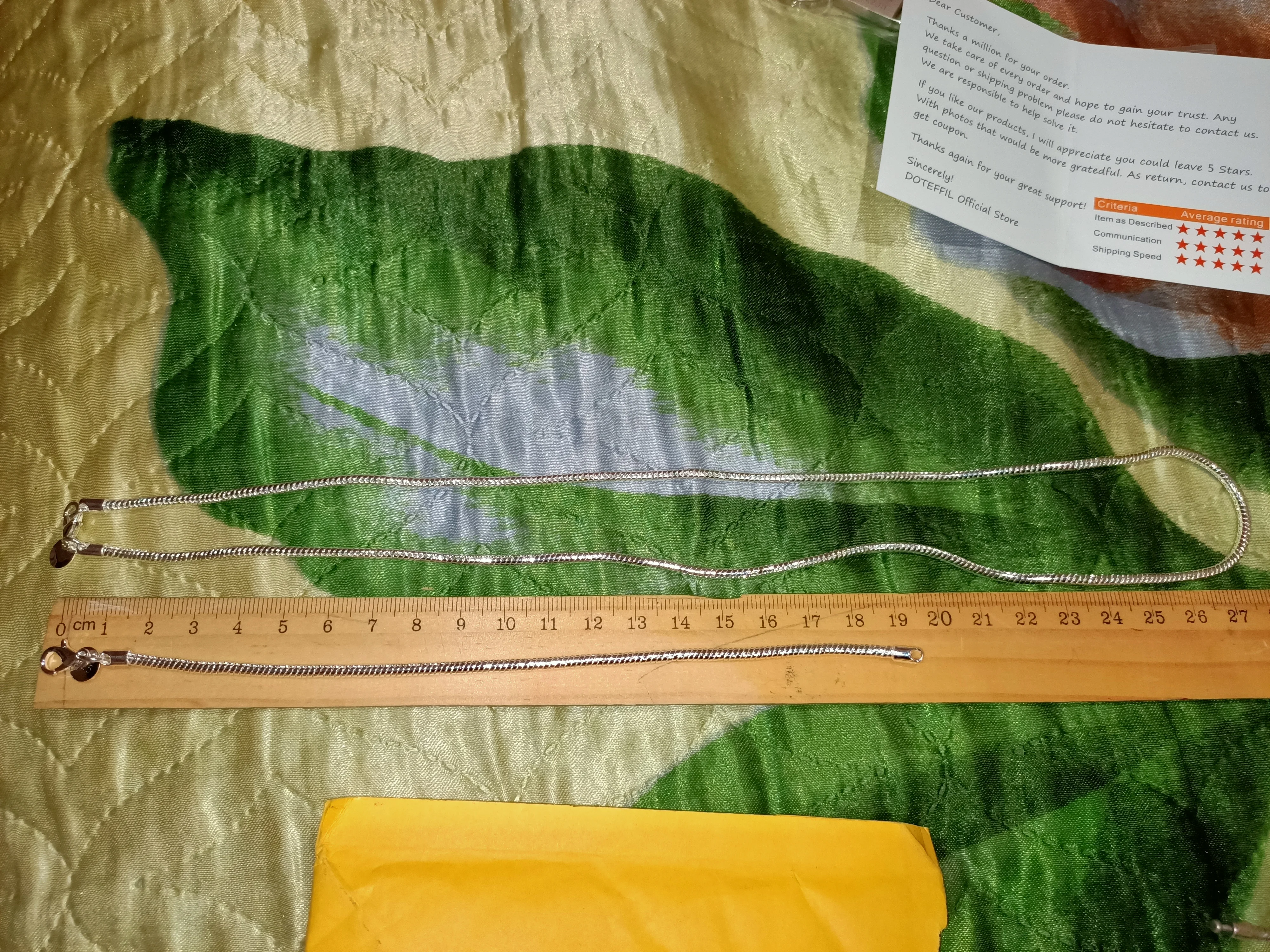 Получила великолепный комплект цепочек! 03.11 отправили, в Воронеже получила 27.11. Цепочка на руку подошла отлично! Все соответствует описанию. Продавцу огромное СПАСИБО! Если будет комплект с размером цепочки 65-70 см. Сообщите, куплю.