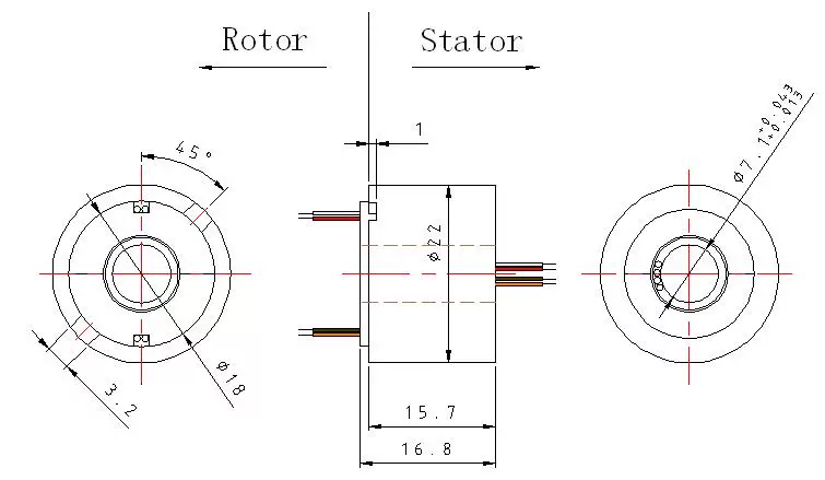 Stalsrt05/07/09-это стандартное миниатюрное скользящее кольцо с полым валом с внешним диаметром 22 мм. Длина указана на чертеже.