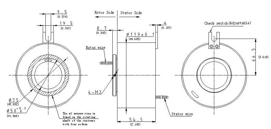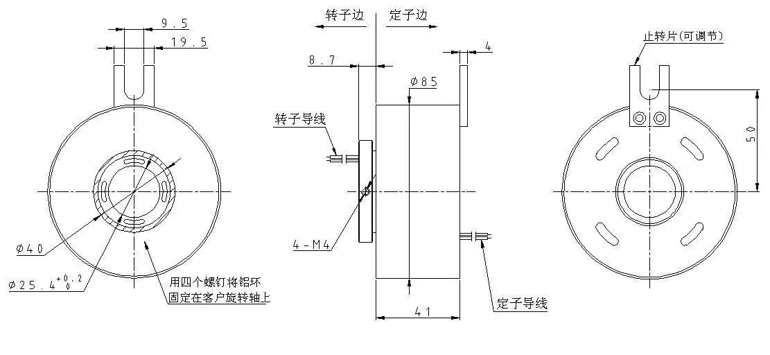 Проводящая петля имеет V-образный паз под углом 90 градусов с плавным вращением, низким крутящим моментом и низким электрическим шумом.