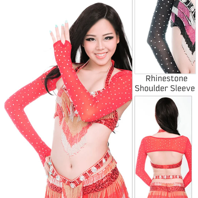 Женский костюм для танца живота, откровенный костюм Стразы с рукавами, аксессуар для танца живота, 2005