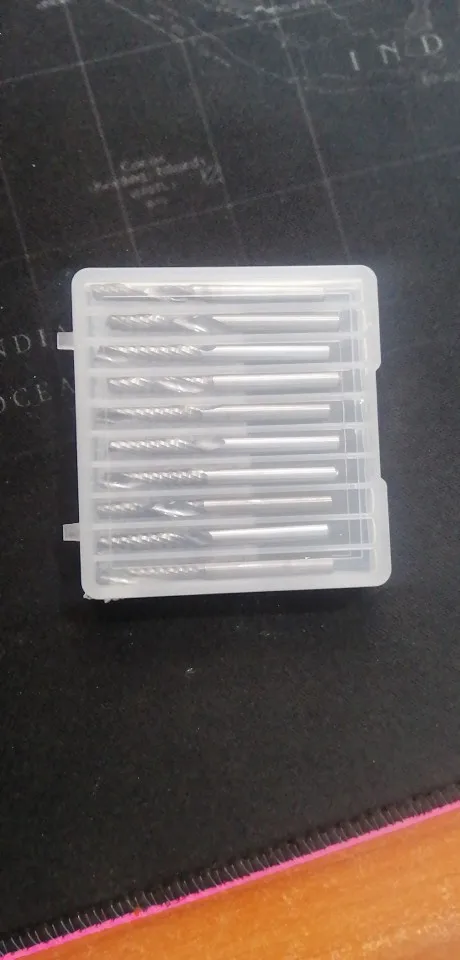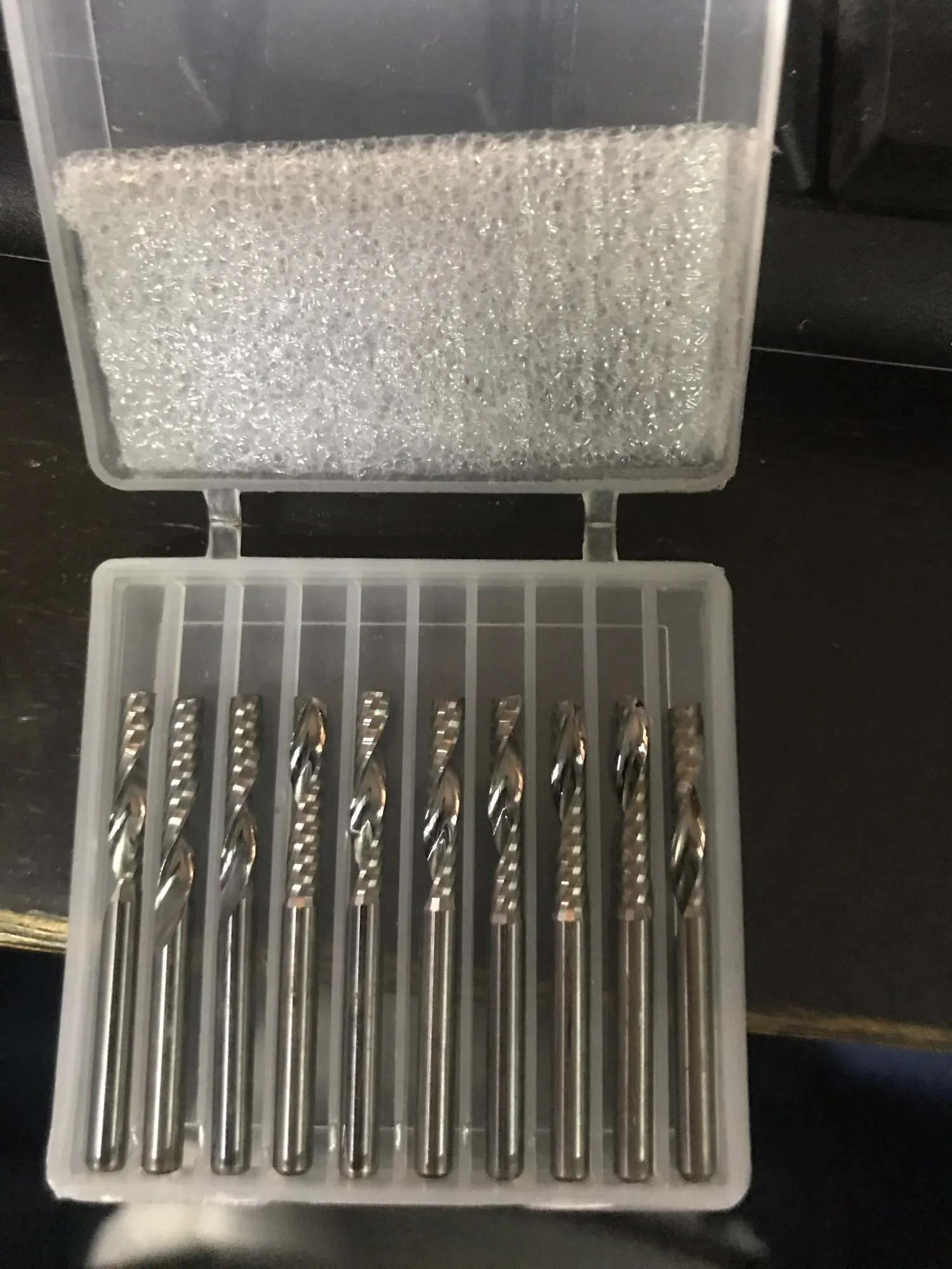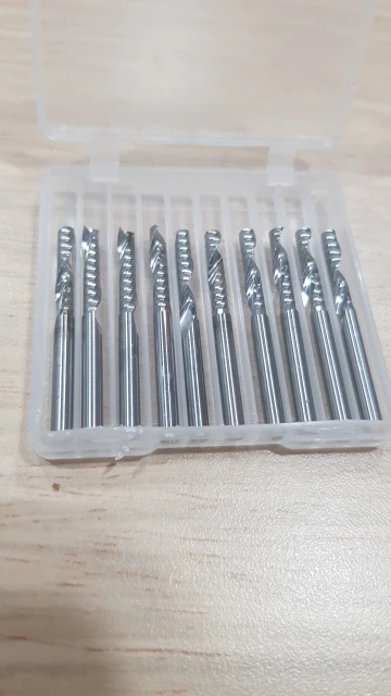 Фреза, за эти деньги - прекрасная. Фрезеровал пластик акрил на 1200 мм/мин,заглубление 2.5 мм. Фрезеровал дуб таким же режимом. В среднем, при норм нагрузках фреза отрабатывает по 12 км. Пришел набор за 2 недели. Буду фрезеровать фанерку ими. Еще фрезеровал алюминий на 700мм/мин, по 0.3 проход - тоже норм