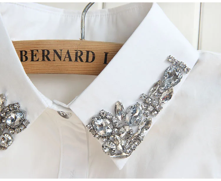 Новинка 2017, Женская хлопковая рубашка с имитацией бусин ручной работы, зимняя измельченная Женская полуэкономная Съемная Имитация кристаллов со стразами