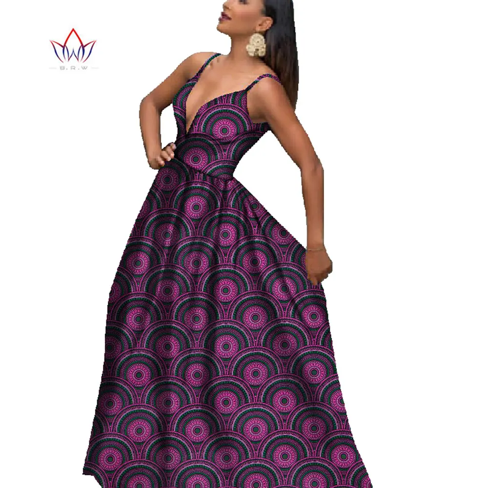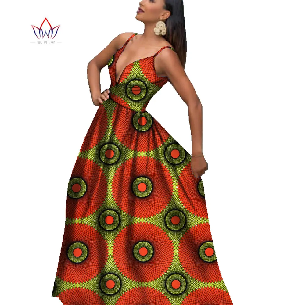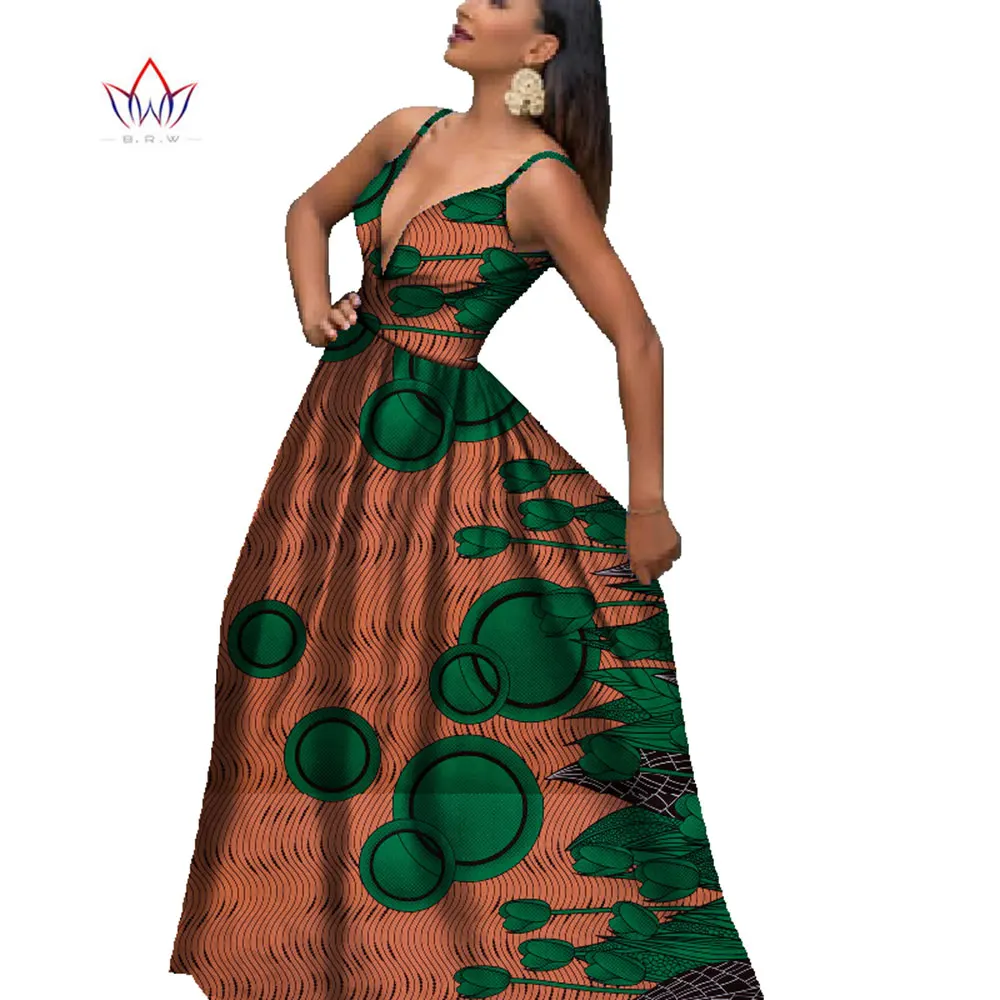 BRW африканские платья для женщин глубокий v-образный вырез без рукавов длинное вечернее сексуальное платье Bazin Riche Большие размеры африканская одежда 6XL WY799