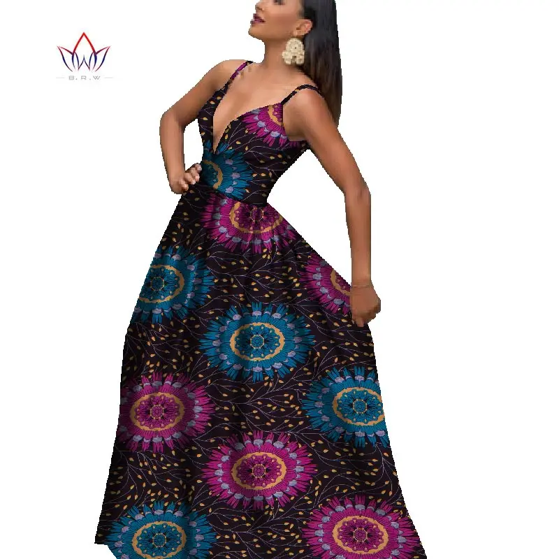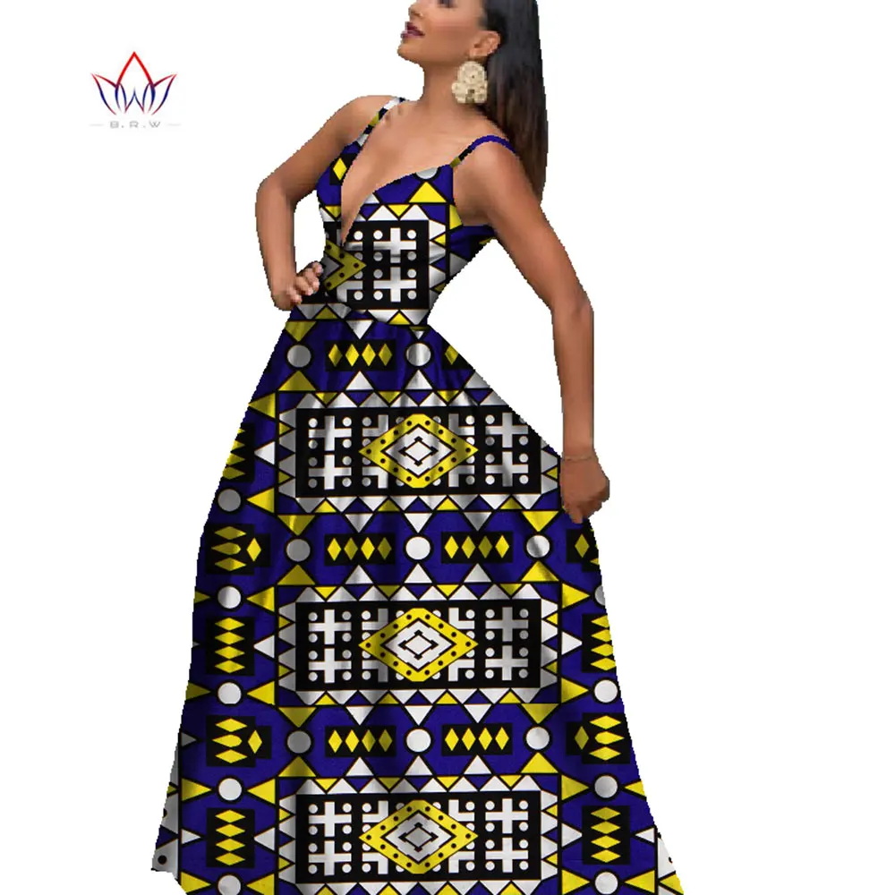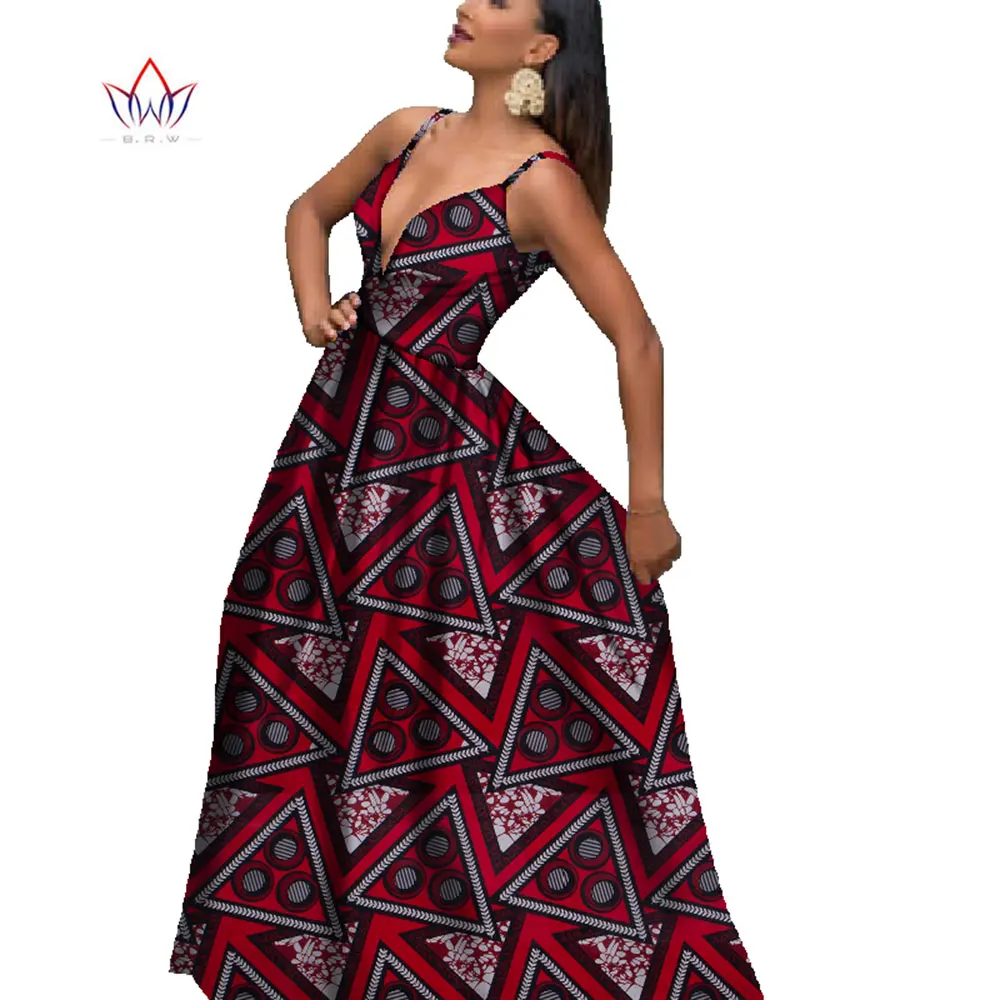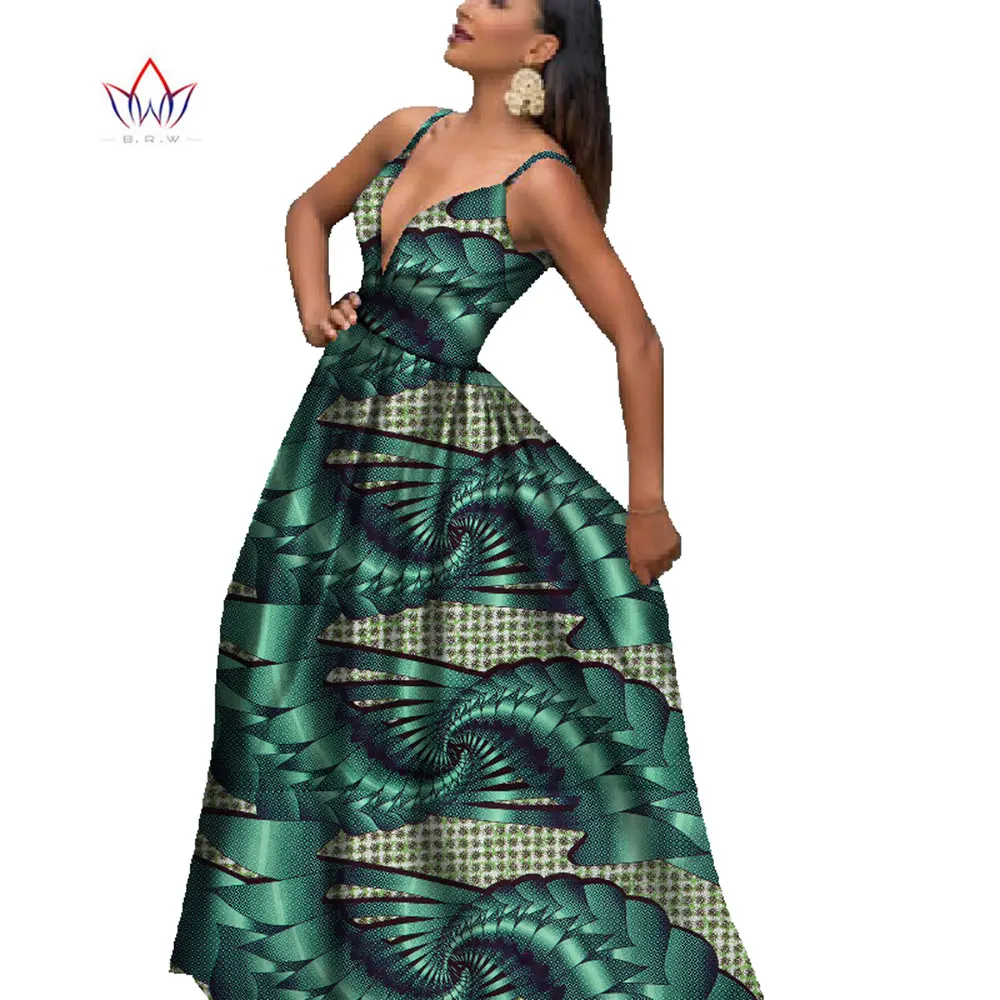 BRW африканские платья для женщин глубокий v-образный вырез без рукавов длинное вечернее сексуальное платье Bazin Riche Большие размеры африканская одежда 6XL WY799