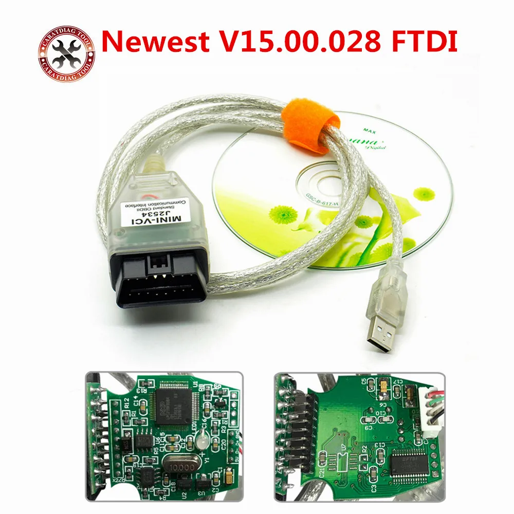 Лучшая цена, мини VCI V15.00.028 FTDI FT232RL MINI-VCI J2534 для To...