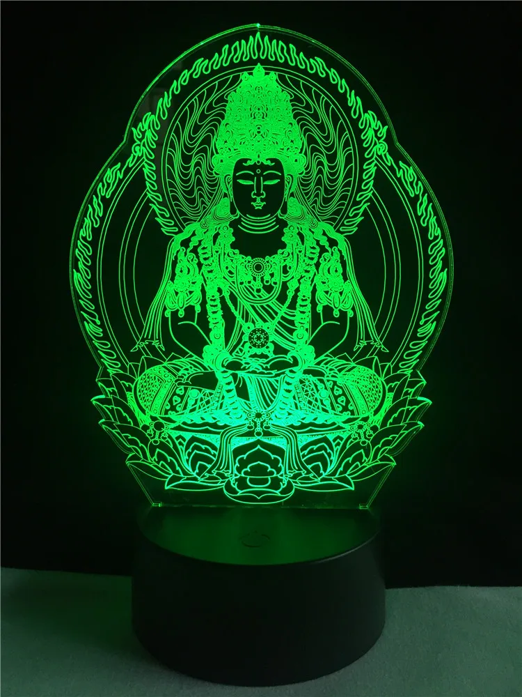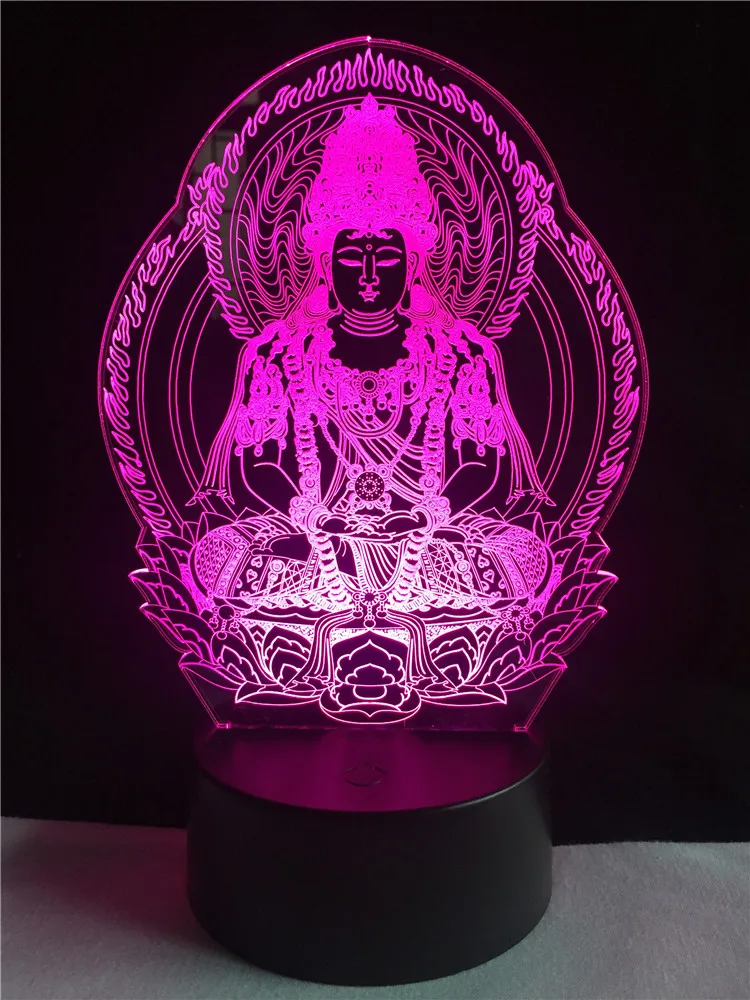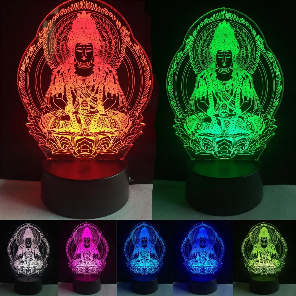 Ночник Будда, меняющий 7 цветов, 3D атмосферный светильник, освещение, визуальная Иллюзия сердца светодиодный игрушка для детей, Рождество, день рожденияОсобенности: