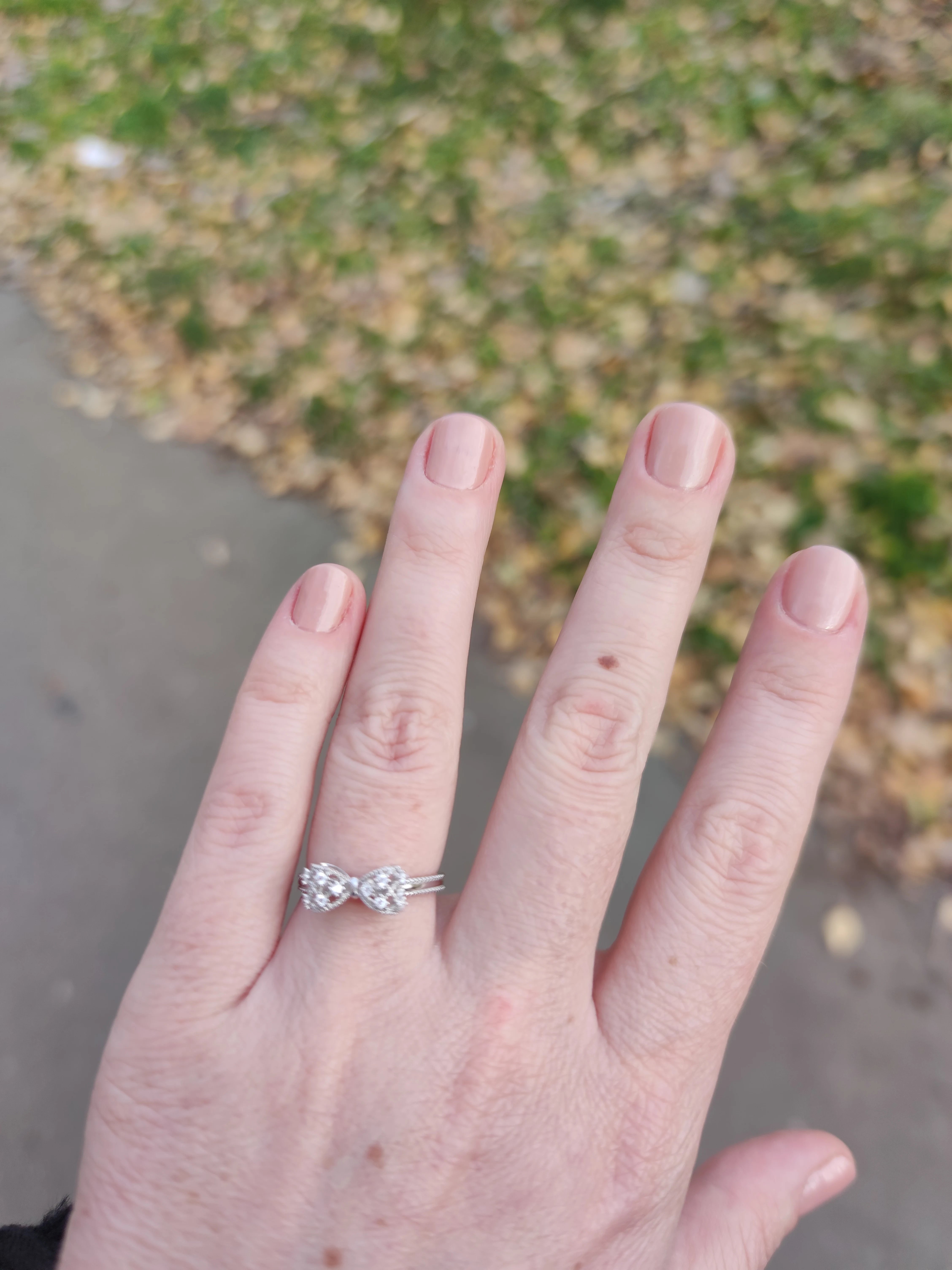 Люблю это изящное кольцо. Я. Просто чувствую, что это лучше подходит для молодой девушки, чем взрослый, очень изысканный и красивый
