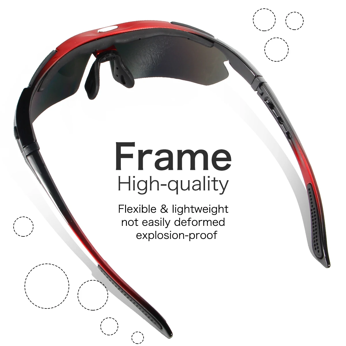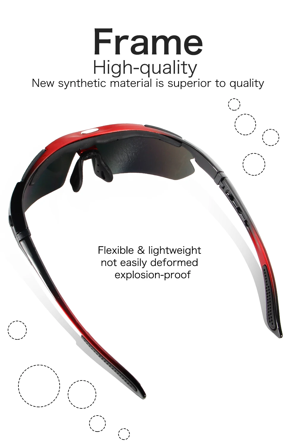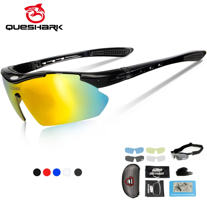 Очки для велоспорта QUESHARK, поляризованные солнцезащитные очки для велоспорта, очки для рыбалки, 5 линз + оправа для близорукости