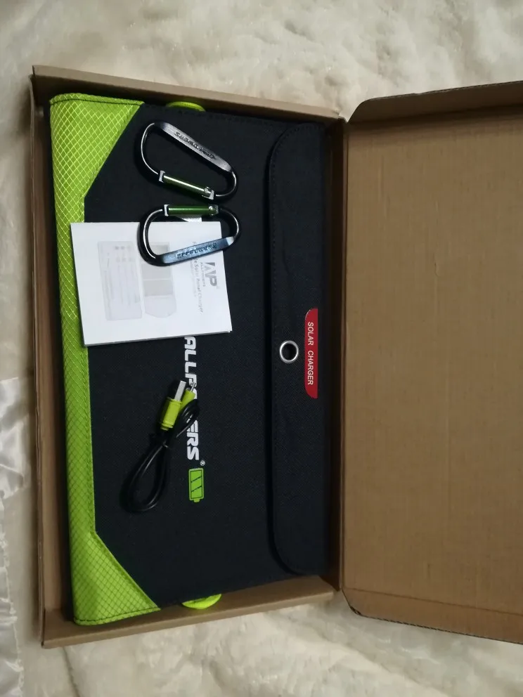 Быстрая доставка, портативное солнечное зарядное устройство выглядит очень твердым и надежным, встроенный аккумулятор был полностью заряжен, телефон заряжается o.k. От батареи, к сожалению, сейчас нет солнечного света, поэтому не могу проверить зарядку от солнечной батареи. Определенно рекомендую.