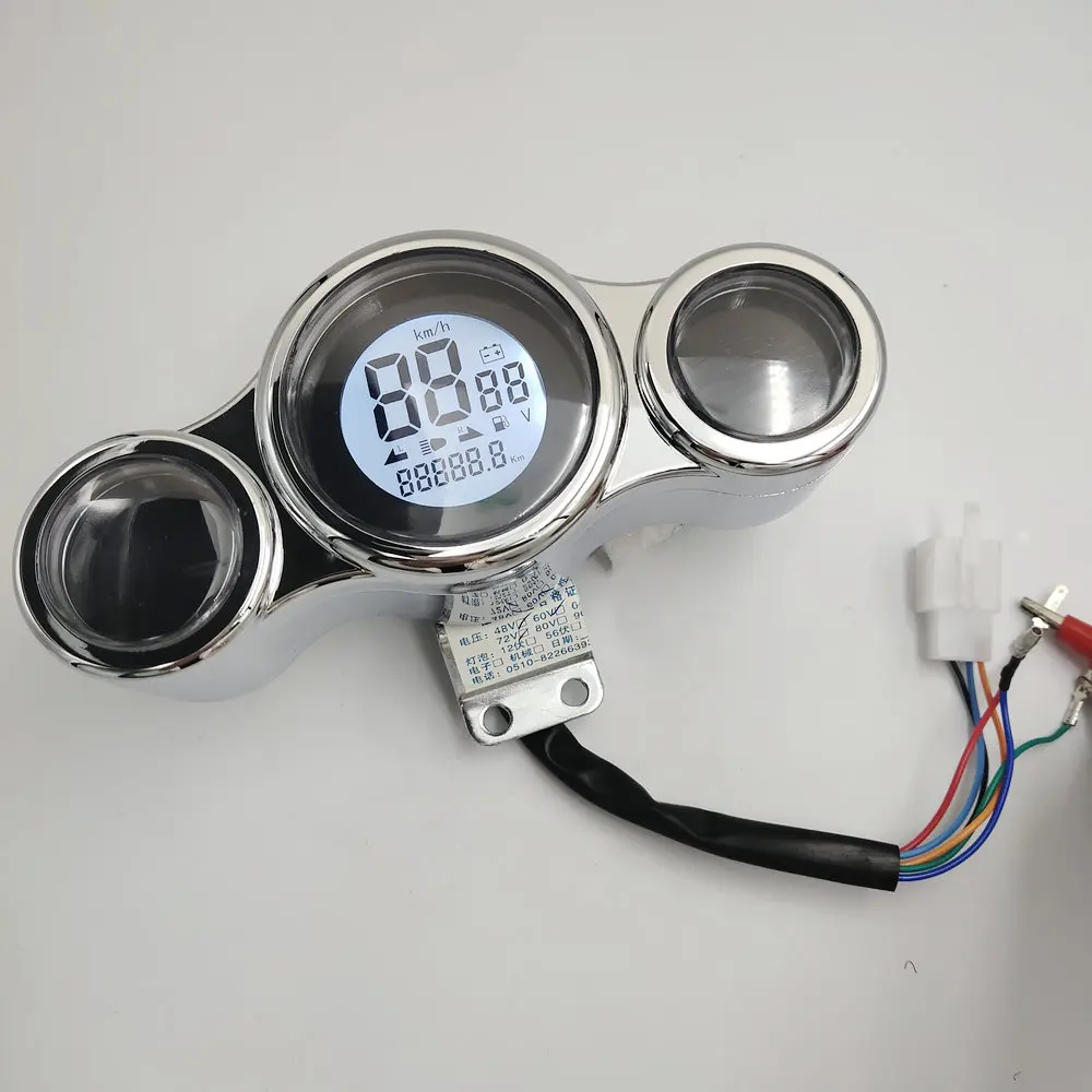 Напряжение питания: 12 В, 24 В, 36 В, 48 В, 60 в, 72 в, 84 в, 96 в, 110 В,12-36 в, 84-110 В нужно сделать на заказ, минимальный заказ 50 штук.Тест скорости: Датчик Холла, провод фазы двигателя или механический датчик.Таким образом, вы можете подключить провод спидометра дисплея (фиолетовый провод)С вашим мотором/контроллером фазовый провод,Или с вашим контроллером провод спидометраИли с проводом hallsensor вашего контроллера или двигателяИли с внешним датчиком скорости,Укажите:1. Передний свет2. Левый/правый поворотный сигнал3 скорости (фазовая линия)4. Нет-температура5 Напряжение6 расстояние поездки (ясно после отключения питания)7. Общее расстояние-одометр8, время работы (время работы)-нет,9. Автоматическое определение положительного или отрицательного контроля10 :3 переключения скоростей -- нет