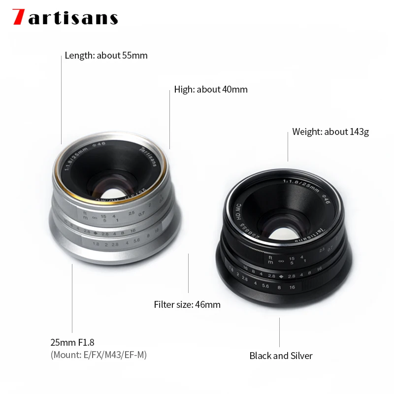 7artisans 7artisans 25 мм F1.8 ручной фиксированный основной объектив для Sony EFujifilm FXCanon EOS-MOlympus и Panasonic Micro 43 Mount