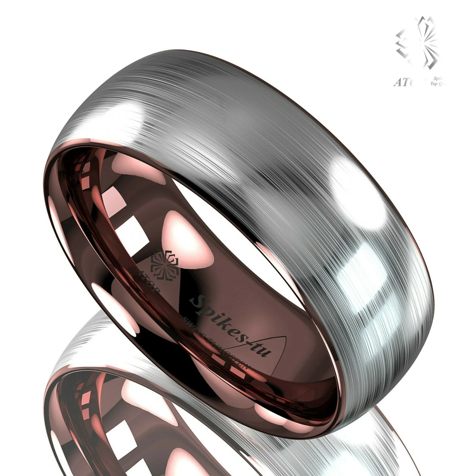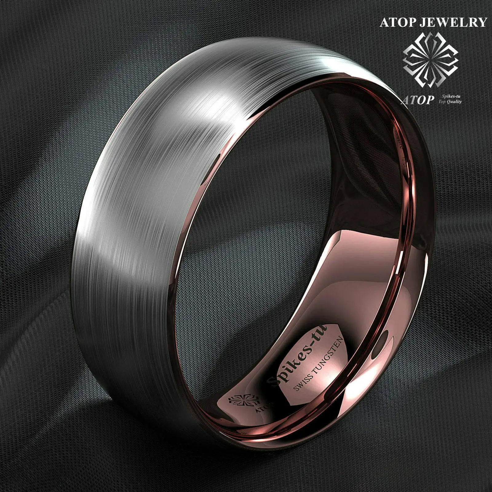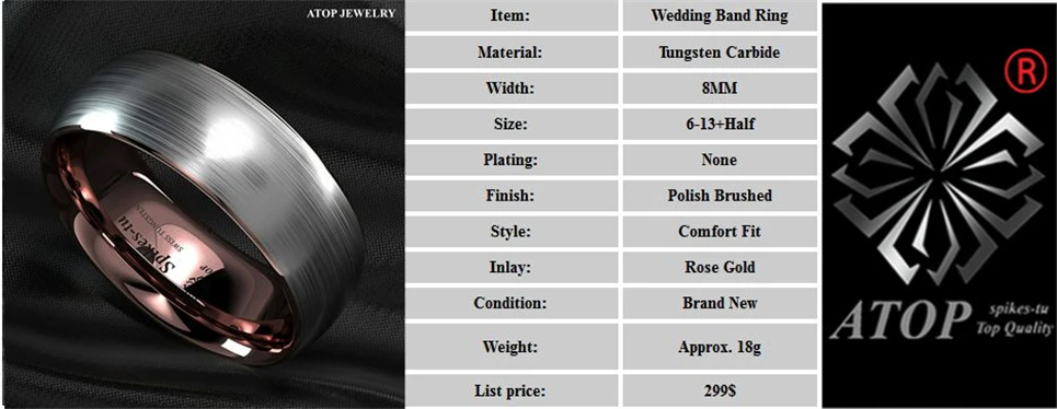 Мужское вольфрамовое кольцо ATOP 8 мм, серебристый, матовый, с инкрустацией из розового золота, обручальное кольцо, Бесплатная доставка