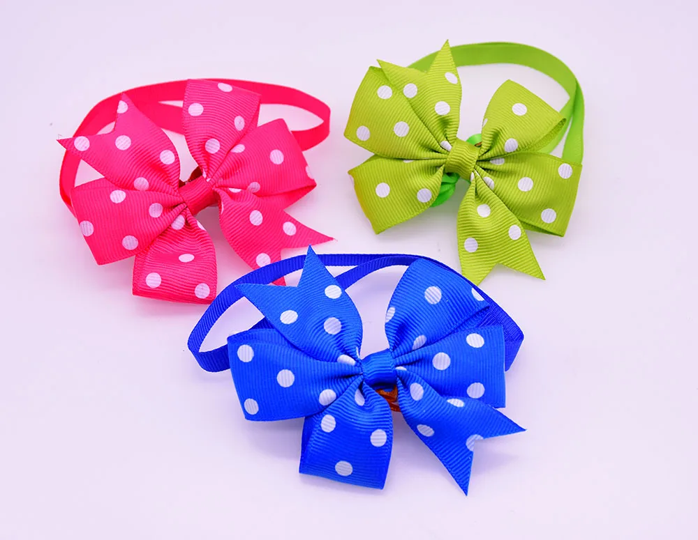 Галстук-бабочка для домашних питомцев, однотонная лента в горошек, 100 шт.лот, аксессуары для груминга собак, кошек, щенков