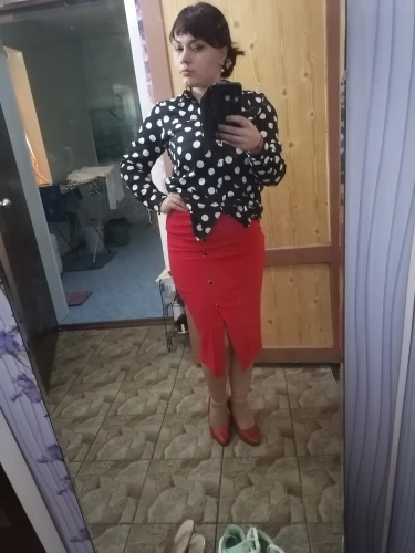 Спідничка симпатична, красивого червоного кольору. доставка здійснена за 20 днів. Тільки от з опису не було зрозуміло, шо вона надто завужена донизу, це спідниця-олівець, на мій зріст 163 нижче коліна. Тканина дуже розтягується. на мій 48 в талії до рівня бедер прилягає, а нижче до колін обтягує. Це трохи незручно. Буду звикати до такого фасону, або перероблю низ.