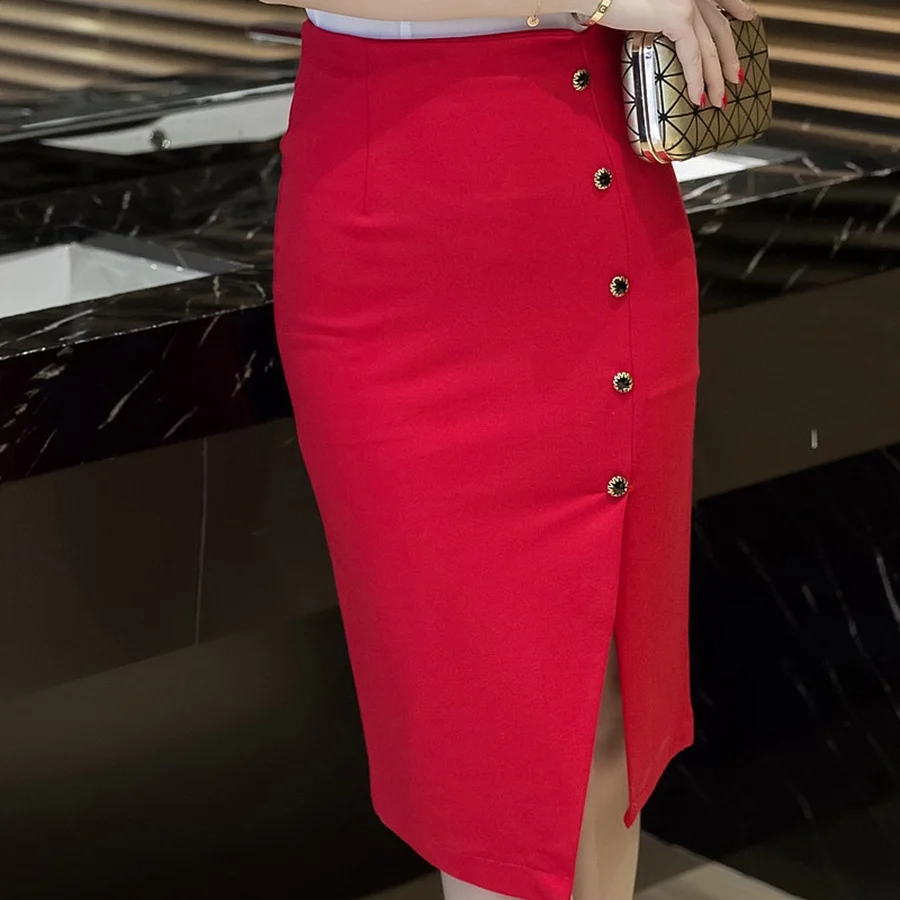 Юбка-карандаш Женская Офисная с завышенной талией и разрезом