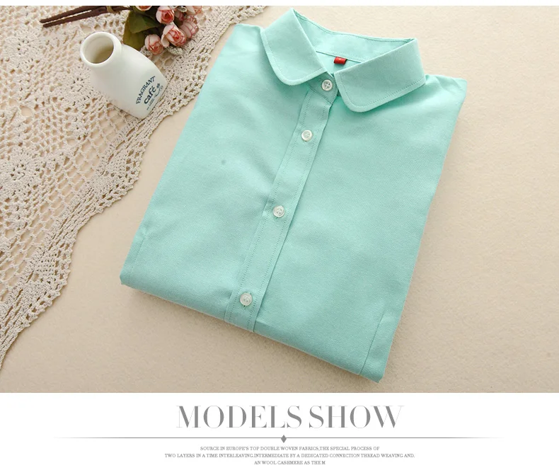 Женская хлопковая блузка, Повседневная белая рубашка из ткани Оксфорд с длинным рукавом, для офиса, 2021