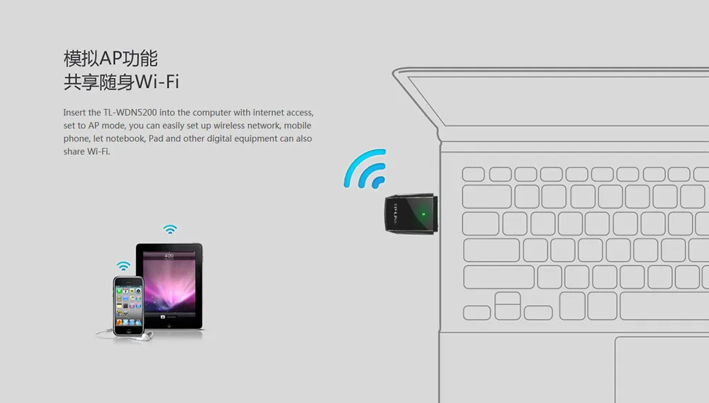 Wifi антенна USB 11AC двухдиапазонный 433 Мбит/с + 150 Мбит/с беспроводной Wi-fi USB адаптерTP-LINK TL-WDN5200433M 802.11ac/a/b/g/n сетевые карты