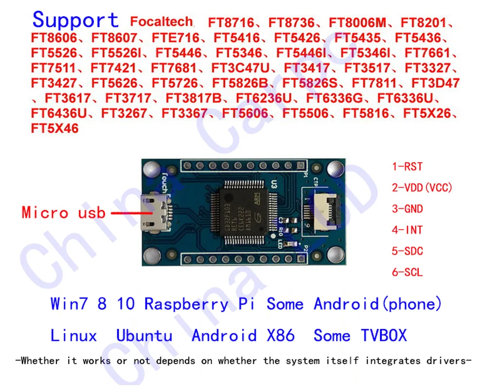 Поддержка чипа:FT8716, FT8736, FT8006M, FT8201, FT8606, FT8607, FTE716, FT5416, FT5426, FT5435, FT5436, FT5526, FT5526I, FT5446 FT7681, FT3C47U, FT3417, FT3517, FT3327, FT3427, FT5626, FT5726, FT5826B, FT5826S, FT7811, FT3D47, FT3617 FT3367, FT5606, FT5506, FT5816, FT5X26, FT5X46