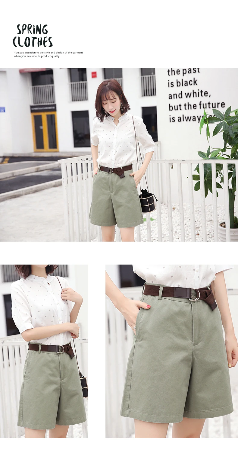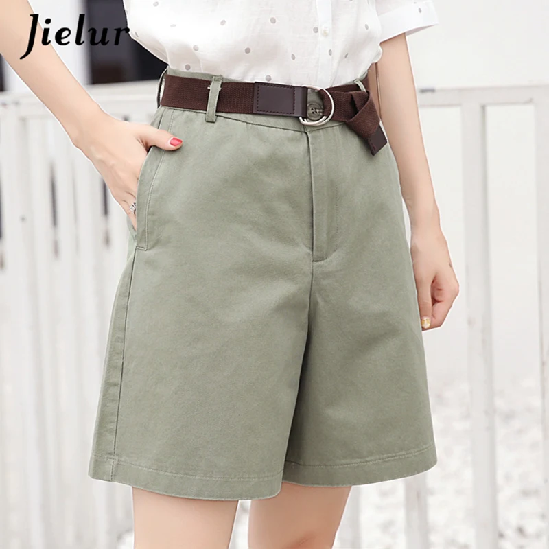 Jielur корейские модные повседневные летние шорты женские свободные широкие брюки пояс зеленые белые шорты с высокой талией женский S-XXL