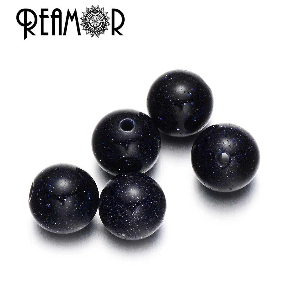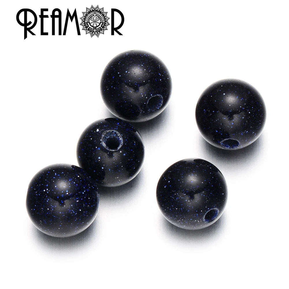 Круглые бусины с голубым песочным камнем REAMOR, круглые бусины с небольшим отверстием для браслета, для изготовления ювелирных украшений