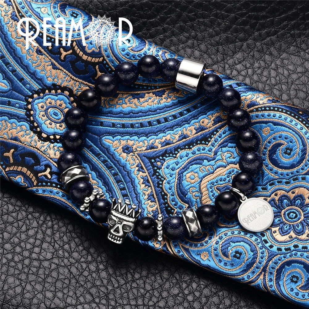 REAMOR роскошные мужские 10 мм черный матовый оникс и синий звездно...