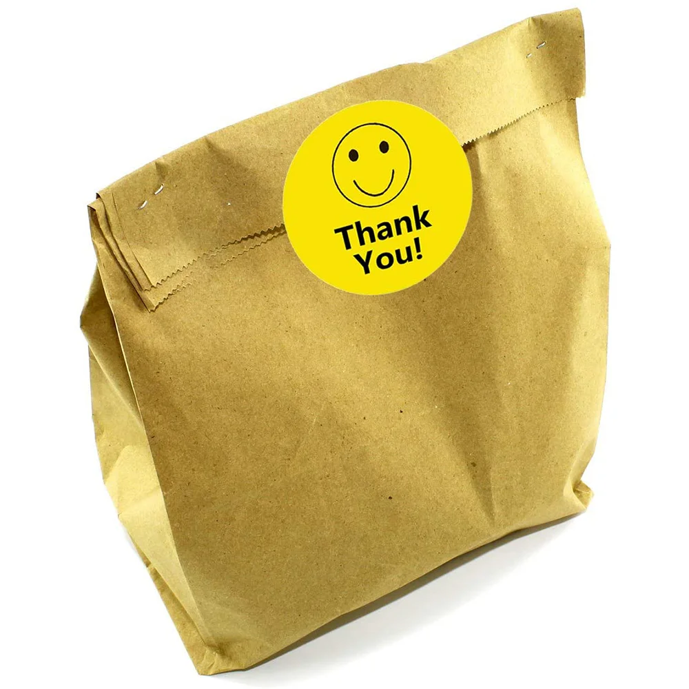 Круг самоклеящихся стикеров спасибо рисунком в виде улыбающихся рожиц; Счастливые наклейки 500 самоклеящиеся этикетки в рулоне в качестве рекламного ярлыка или посылка этикетка