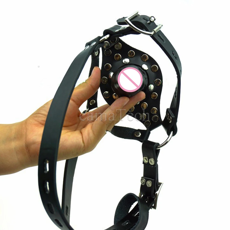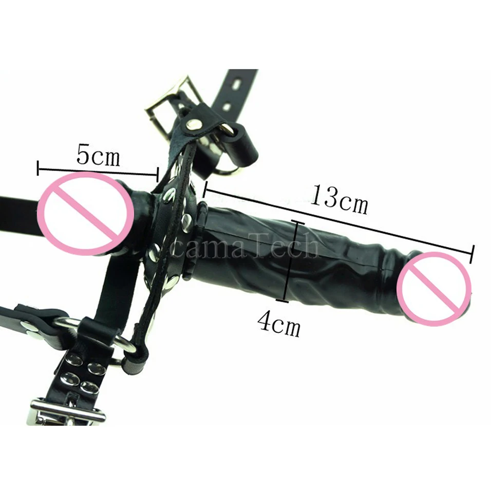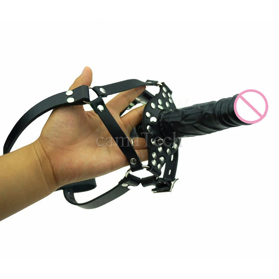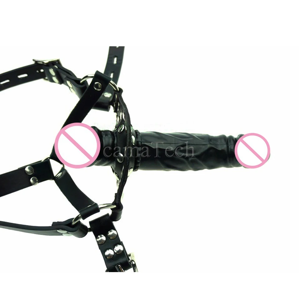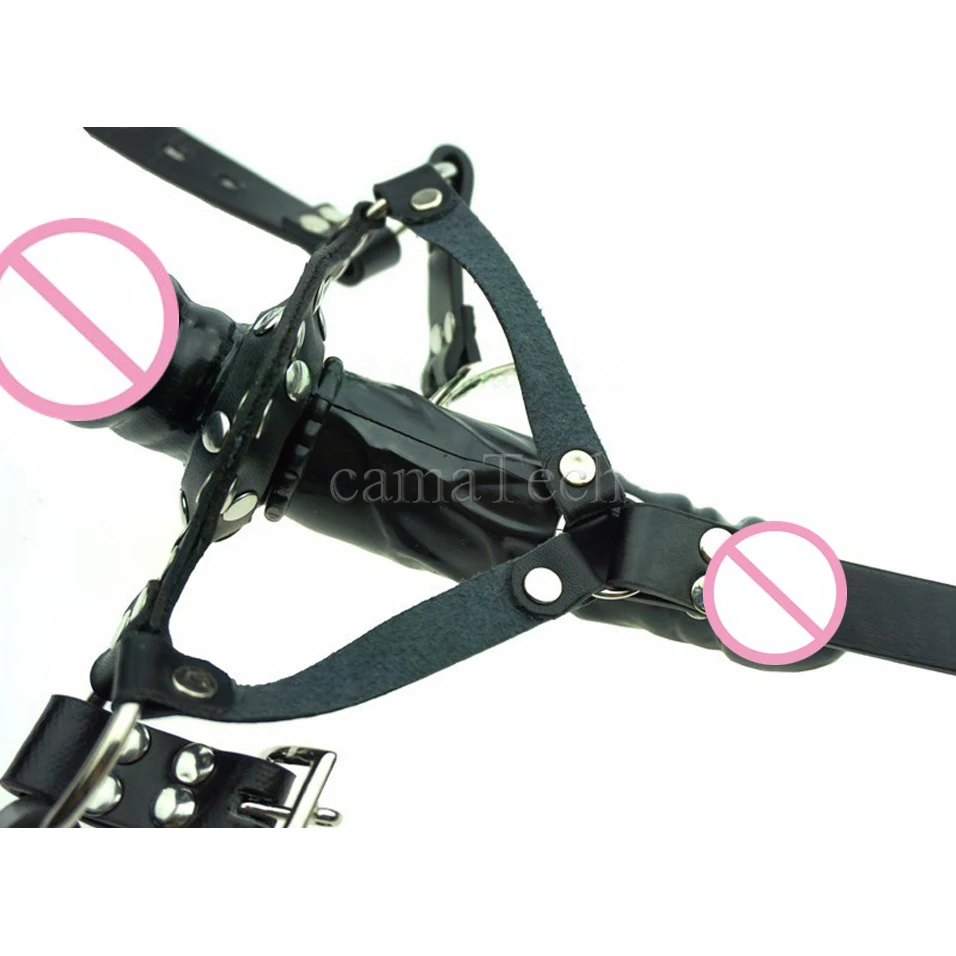 Двухсторонний фаллоимитатор camaTech, ремешок на голову, жгут для рта, пениса, открытый штекер, страпон, лесбийский член, кожаное рабство, секс-игрушки